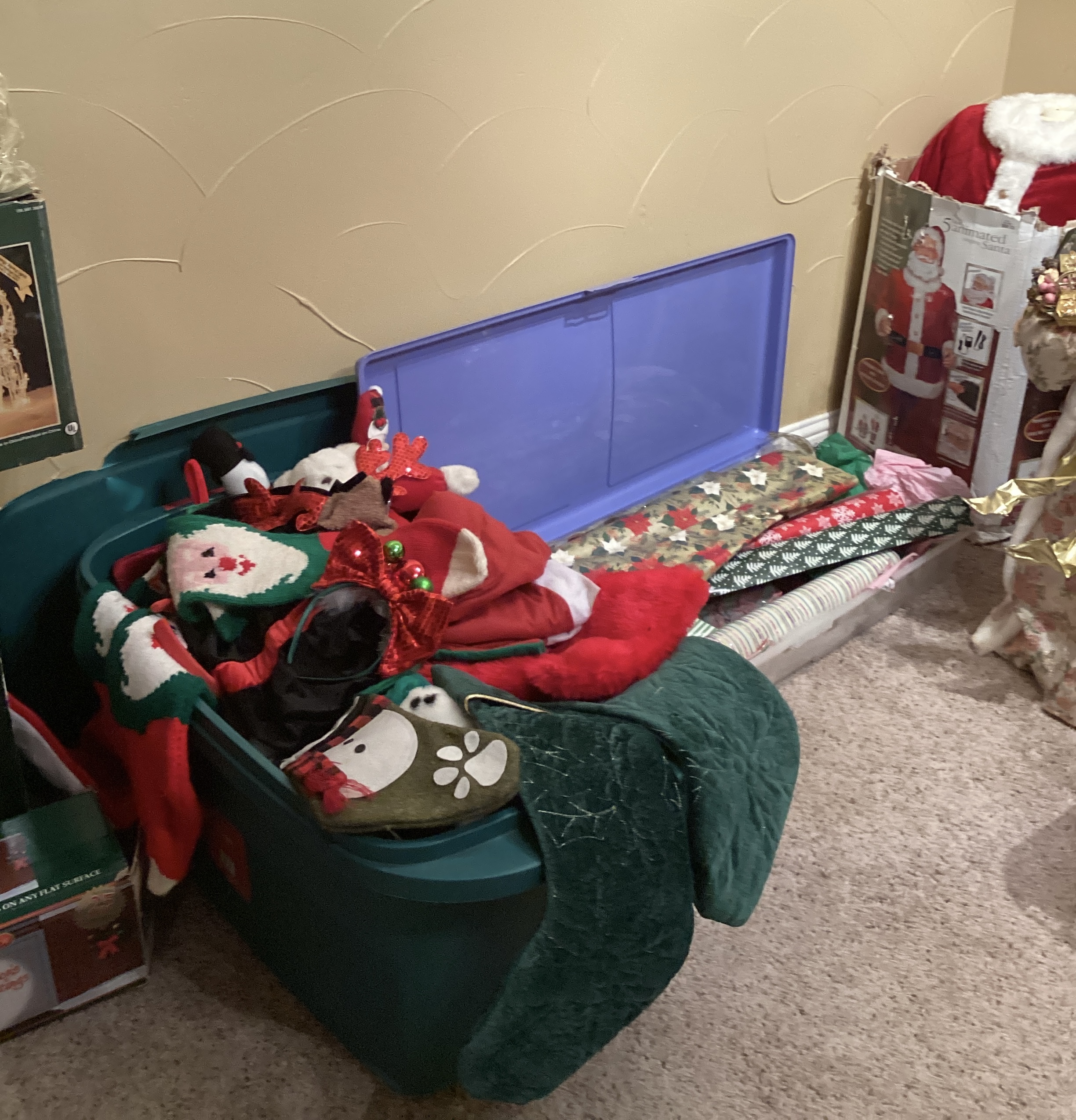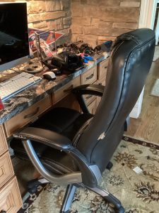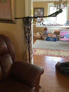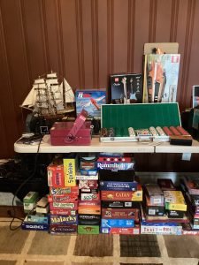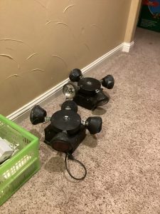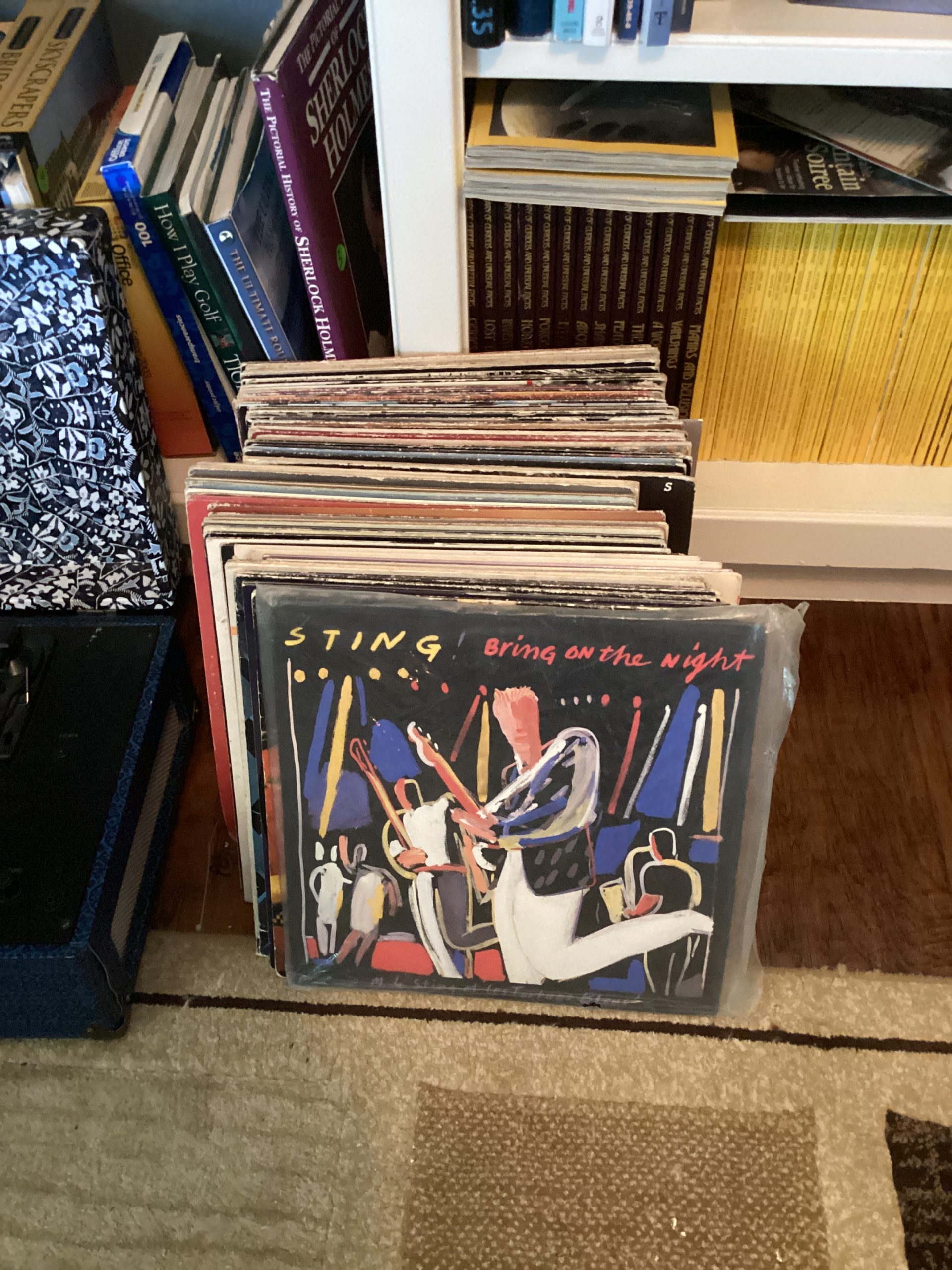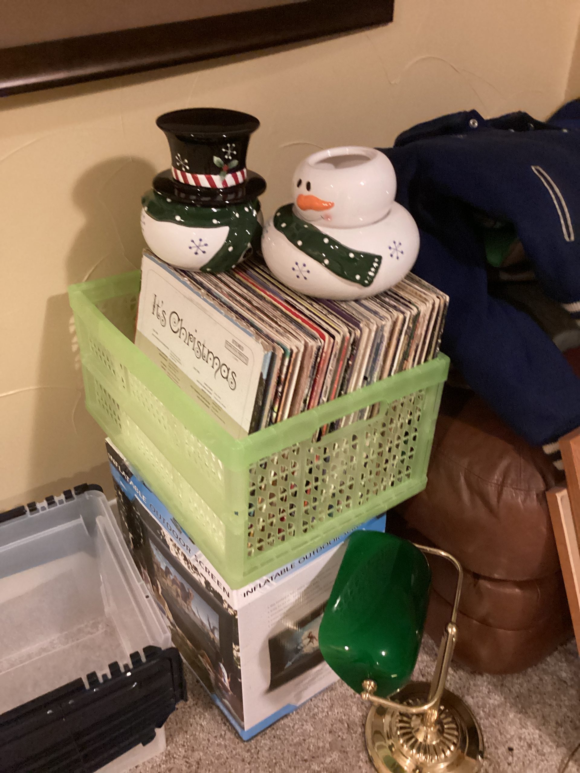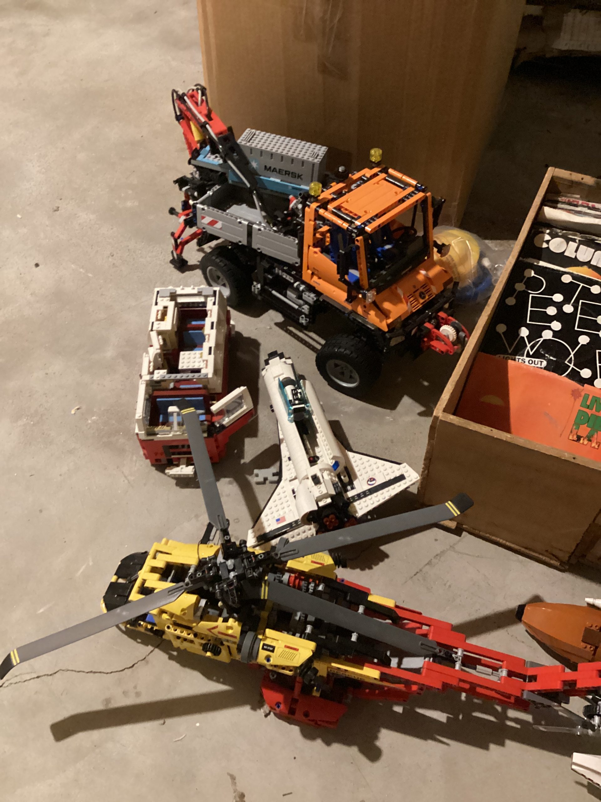 guitars, drum sets, amps, speakers, leather sectional, records, train set, Legos