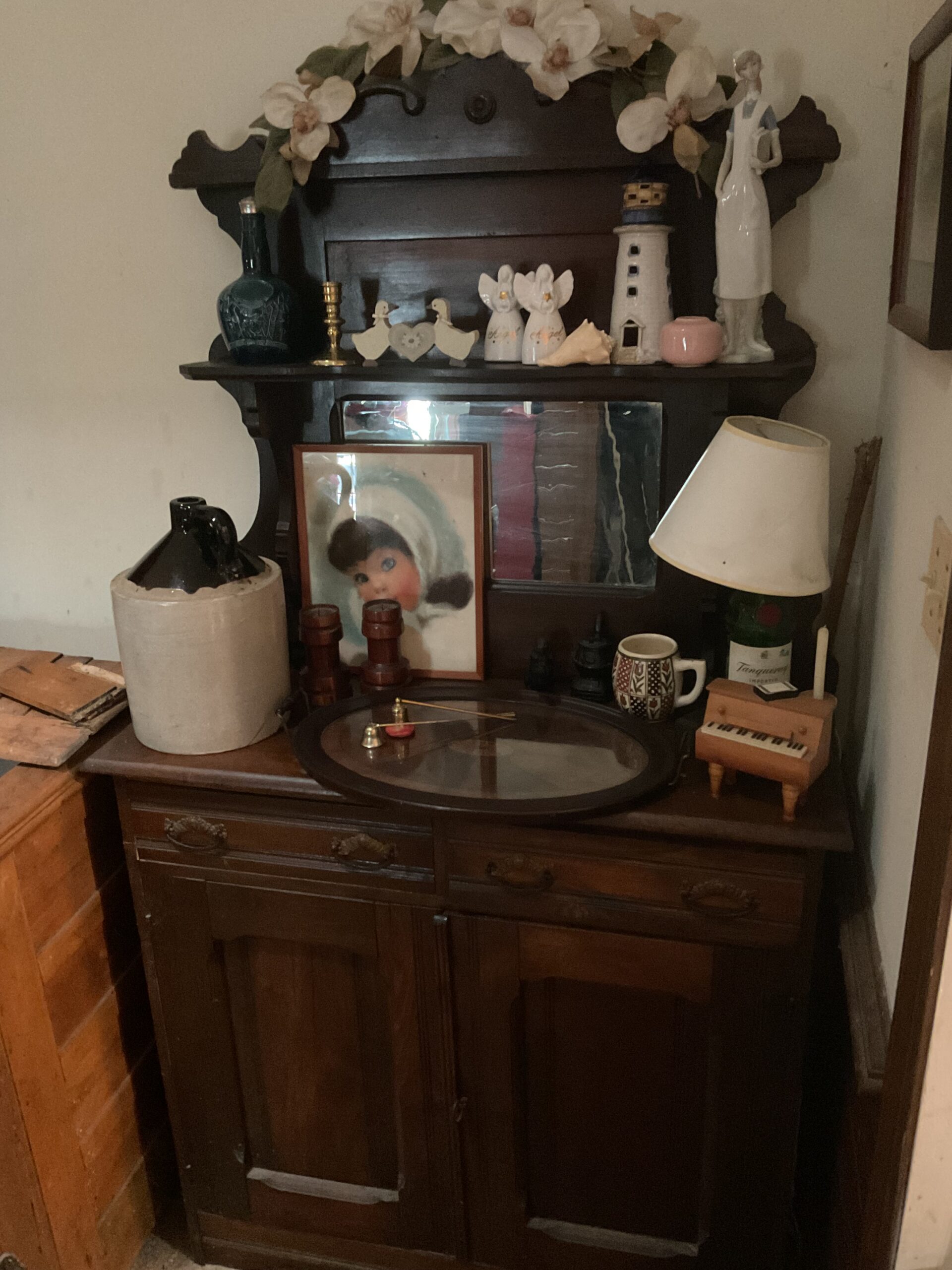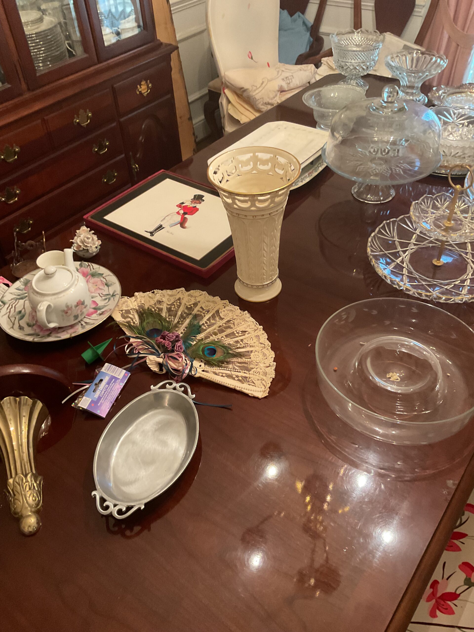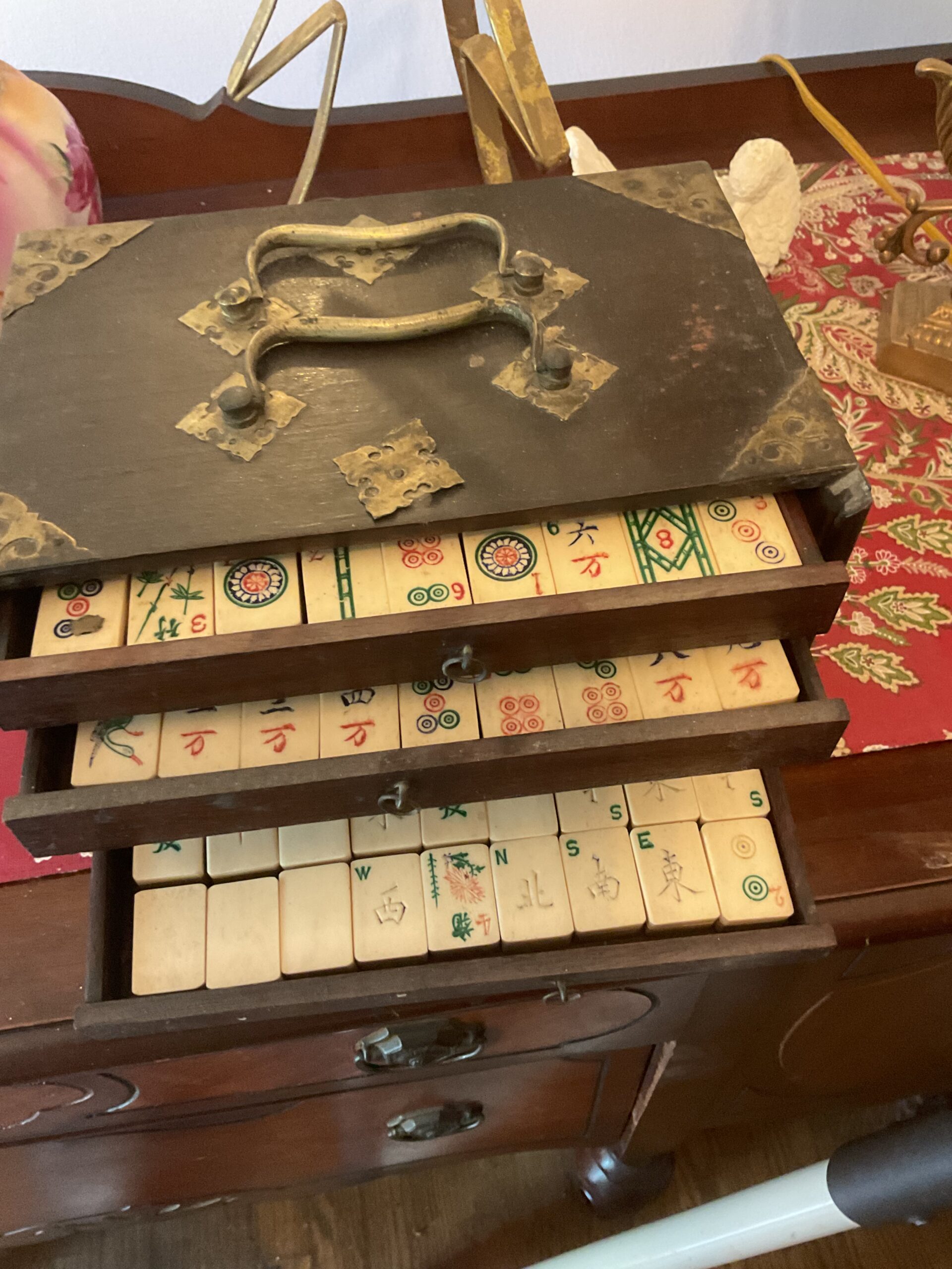 This is a massive downsize! Furniture, ladies clothing and accessories, holiday decor, kitchen items, vintage and antique items, roll top desk, vintage, wicker, nutcracker collection, books, record albums, primitive furniture, outdoor furniture, lawn, care, equipment, vintage pennants, leather sofa and loveseat, farmhouse, style kitchen table, hats, pocketbooks, framed art, circa 1917 Mahjong set, And much much more!