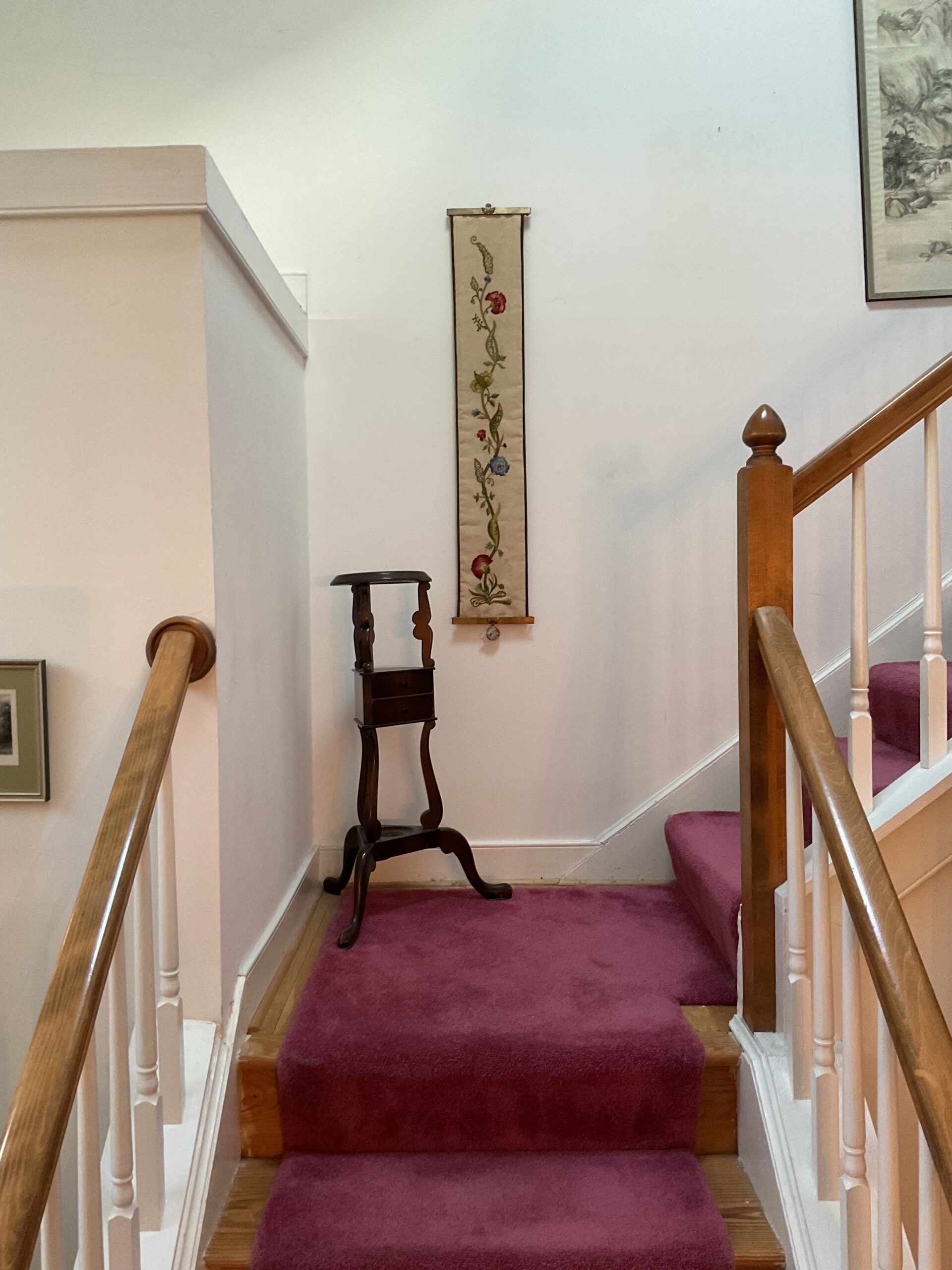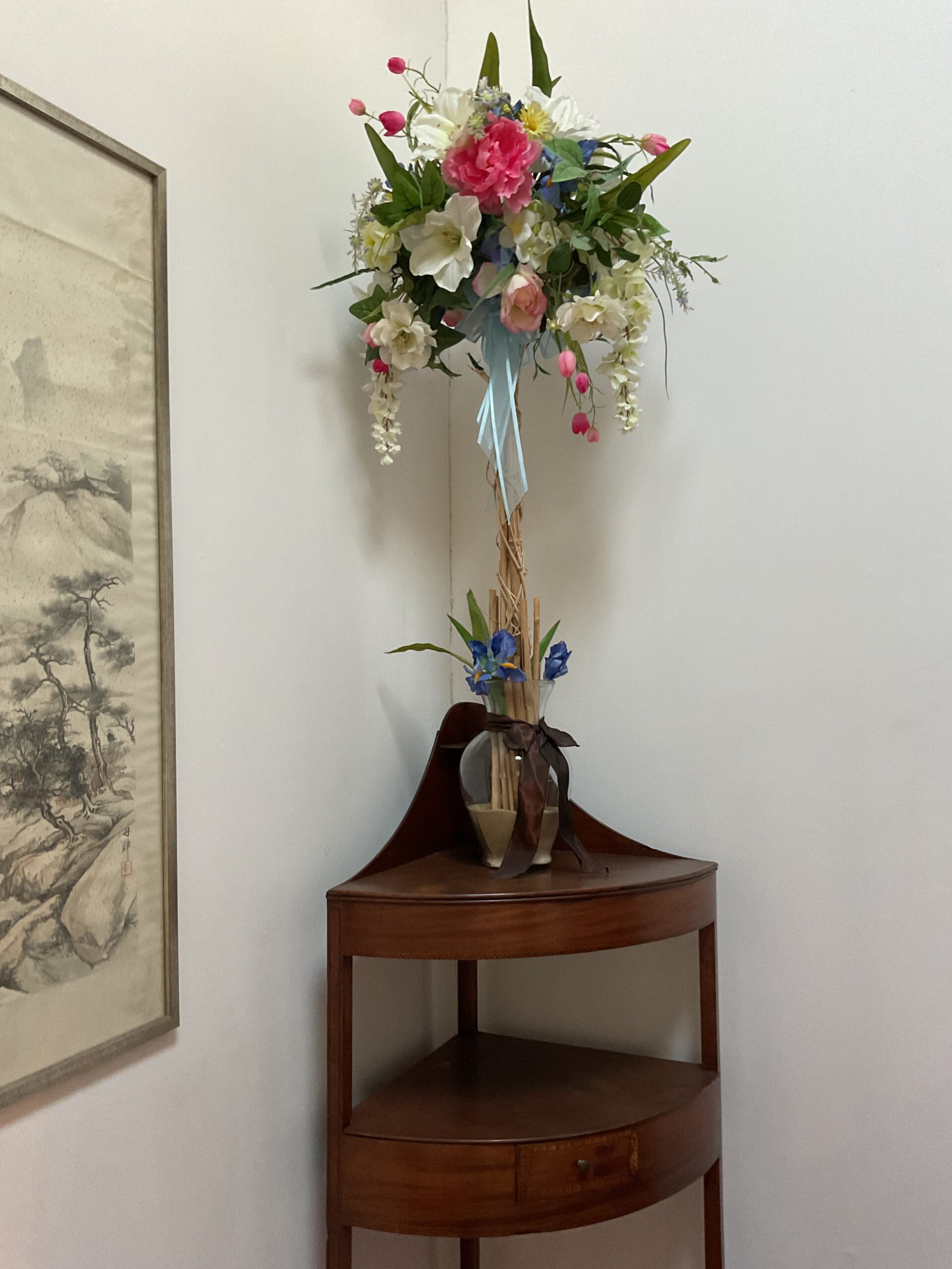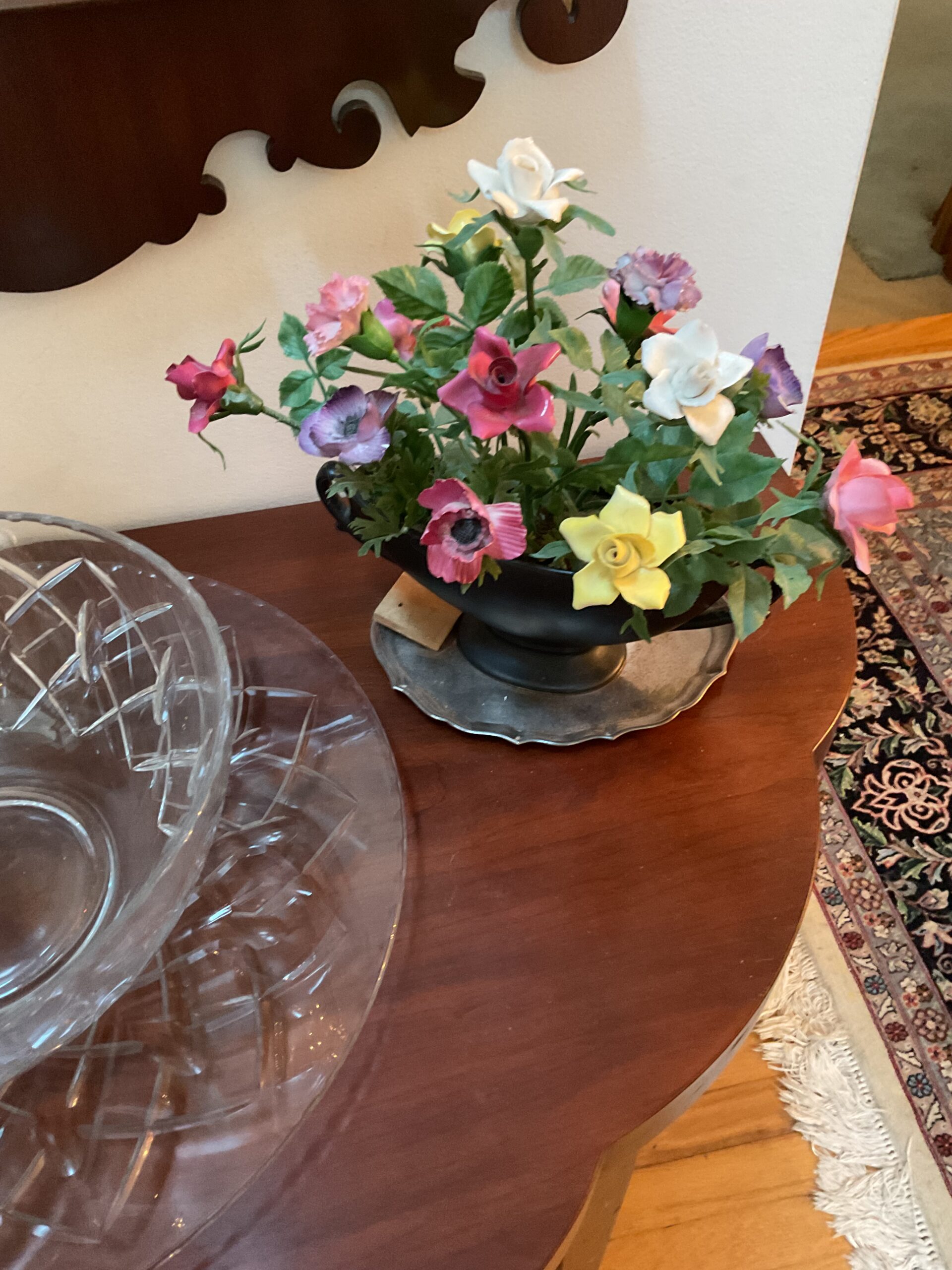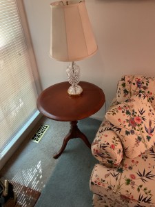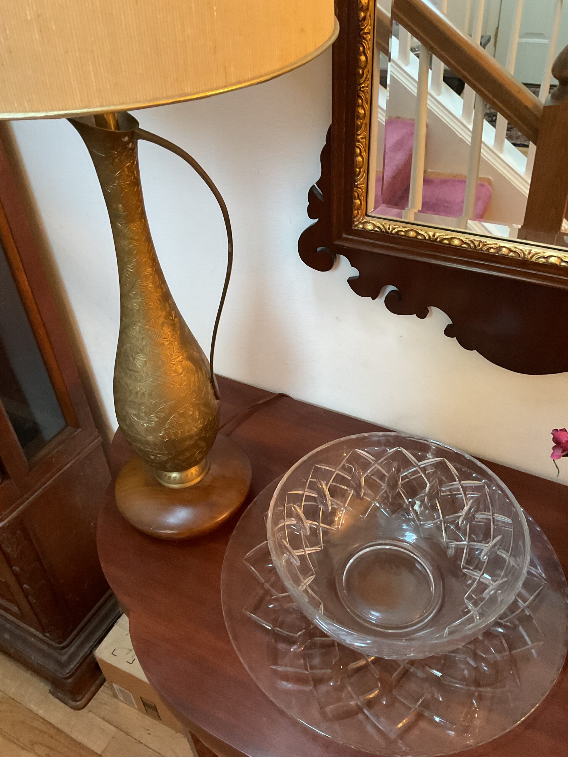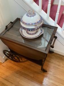 This is a good solid sale with a lot of quality stuff! Antique silver, Sterling, china, crystal, Sheraton style sideboard, Walnut inlaid silver chest on legs, vintage stained glass hanging chandelier, Madame Alexander dolls, vintage wedding dress, 1950s mid century modern dresser, 18 century Chester drawers, mirrors, artwork, vintage Christmas items, lamps, quality upholstered furniture, yard items, and much much more!