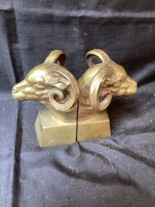 Rams head brass bookends