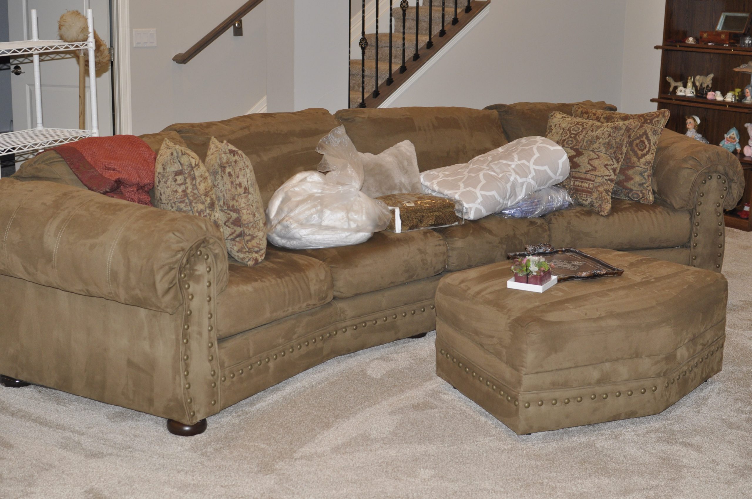 Gently Used Suede Curved sofa and ottoman