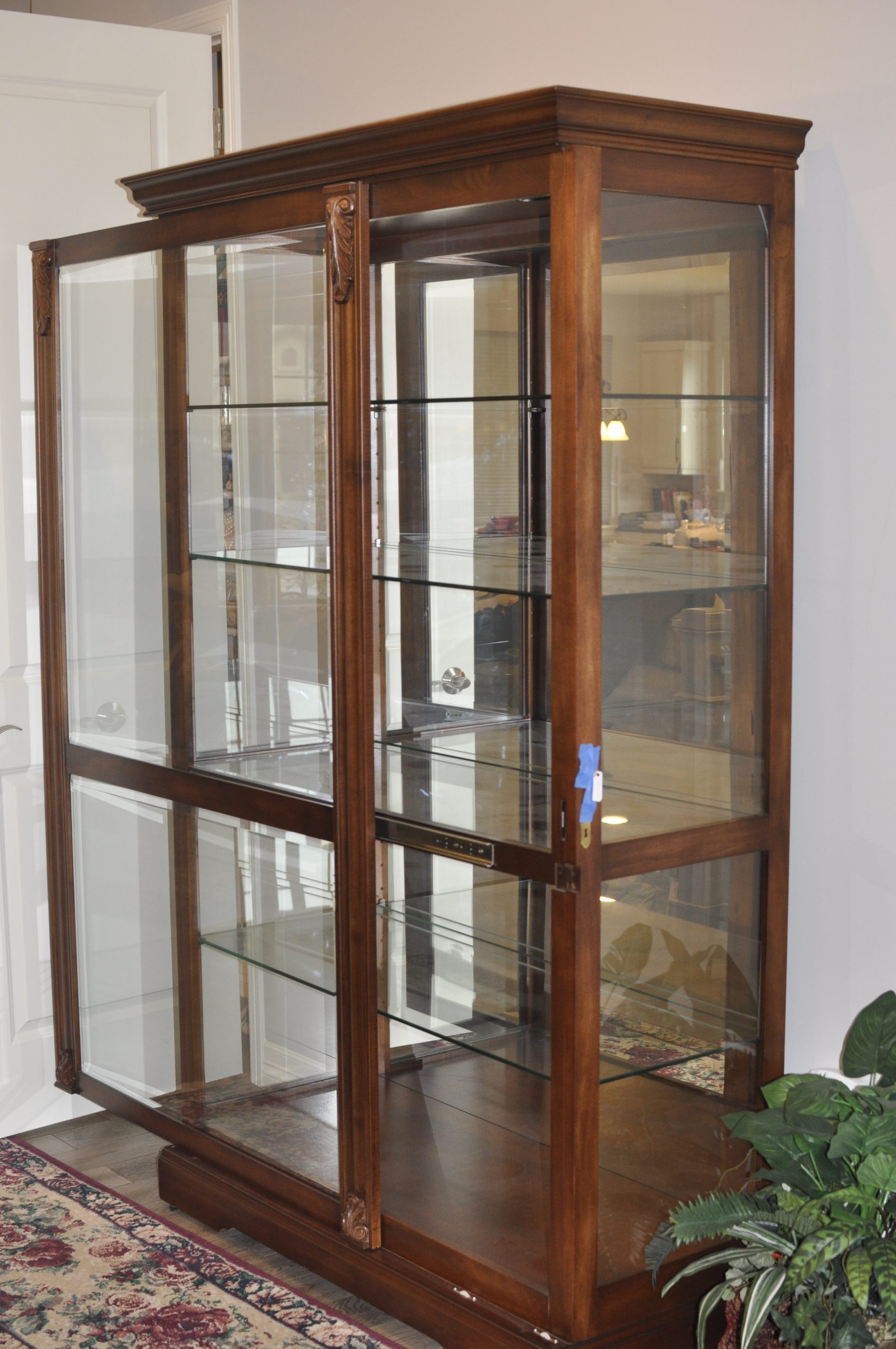 Large Curio cabinet with glass shelves and sliding door