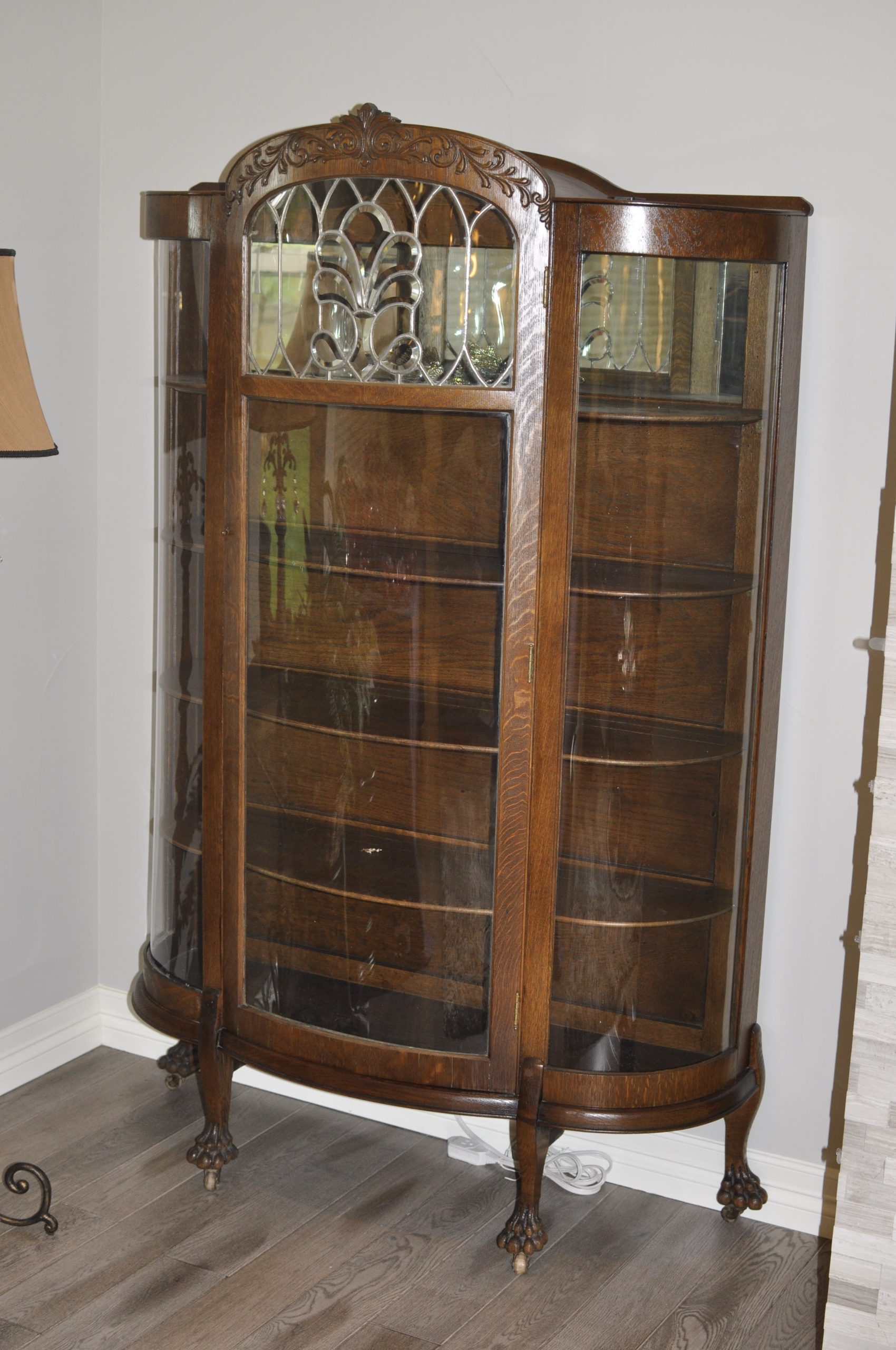Antique Curio Cabinet with leaded glass and curved glass