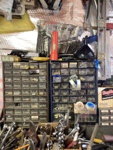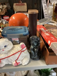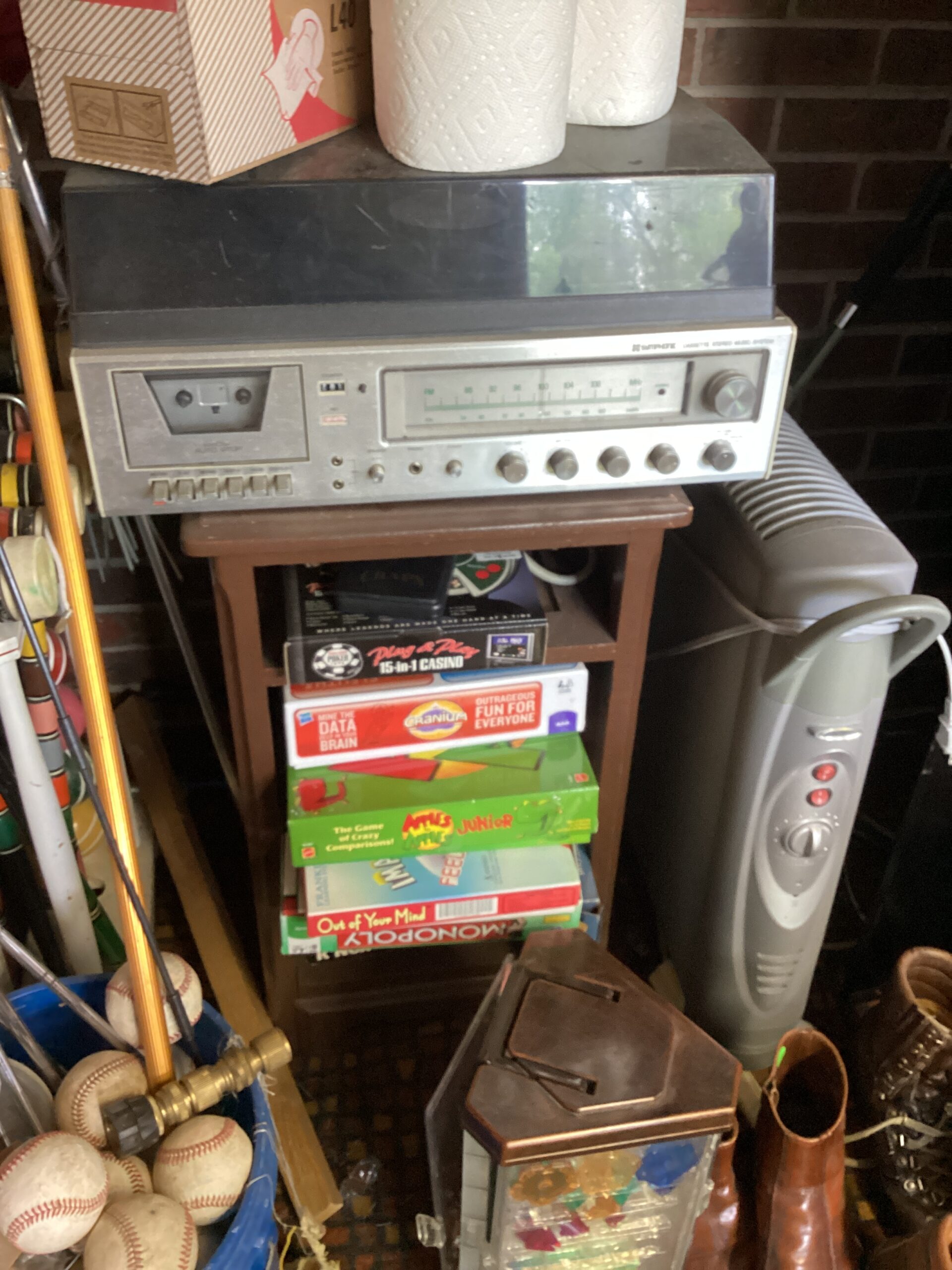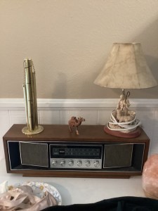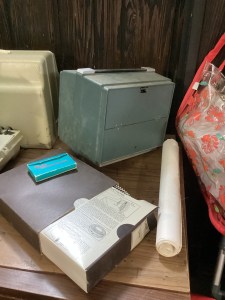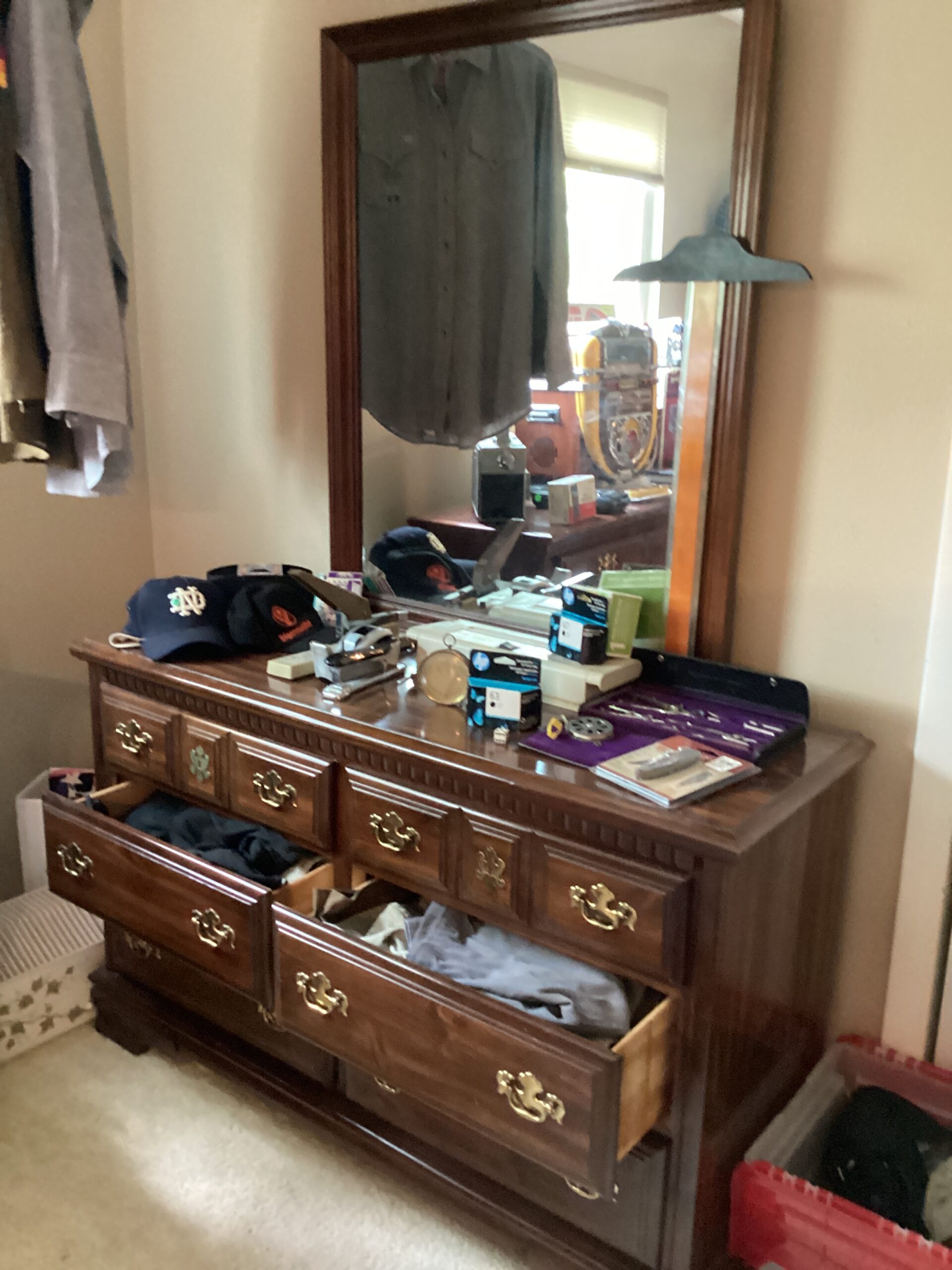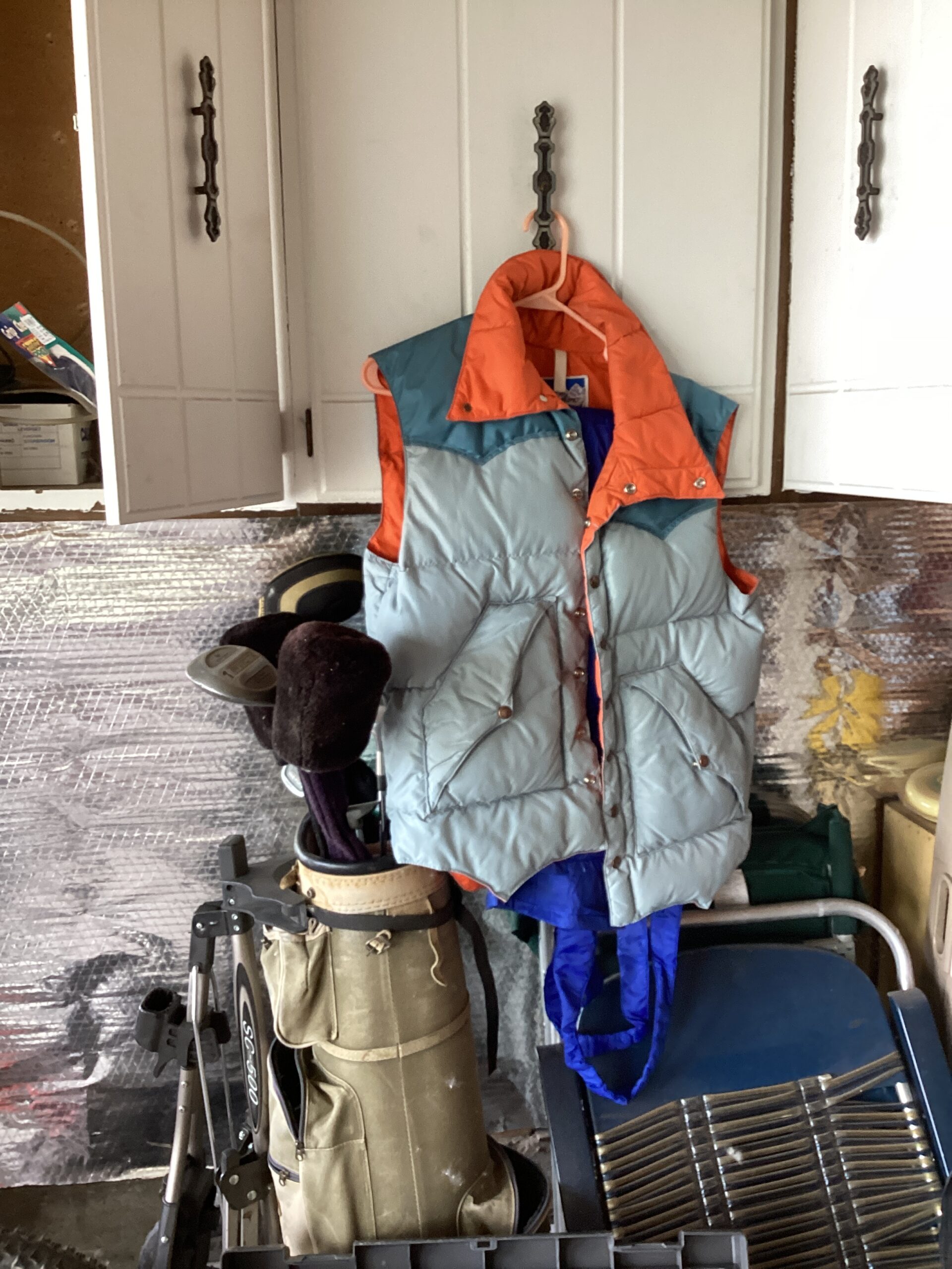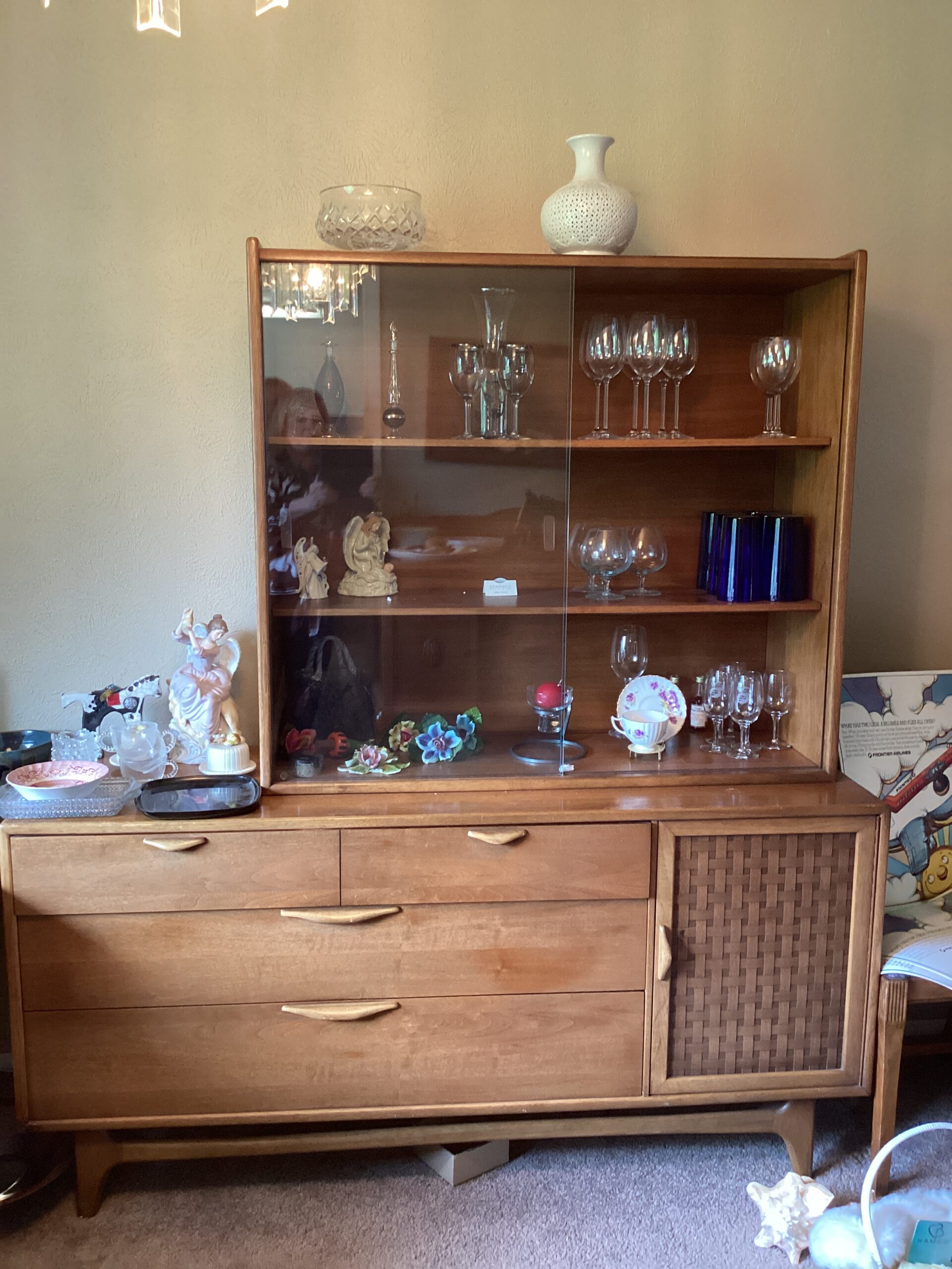 MCM hutch, records, vintage clothing and posters and tools galore!
