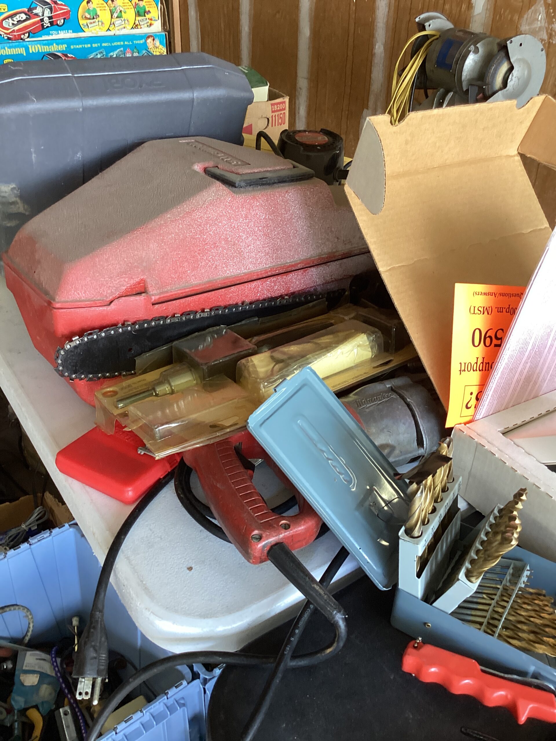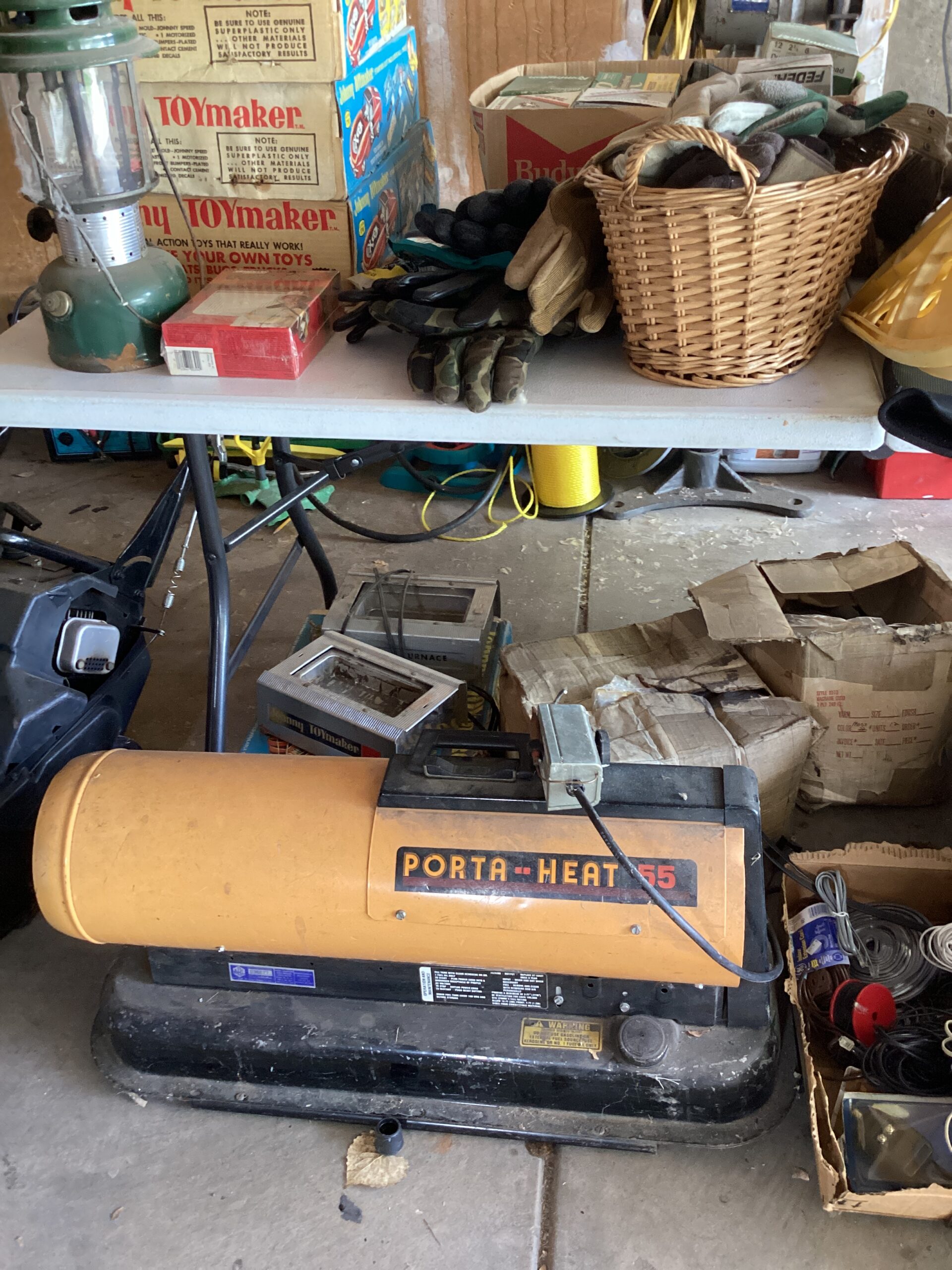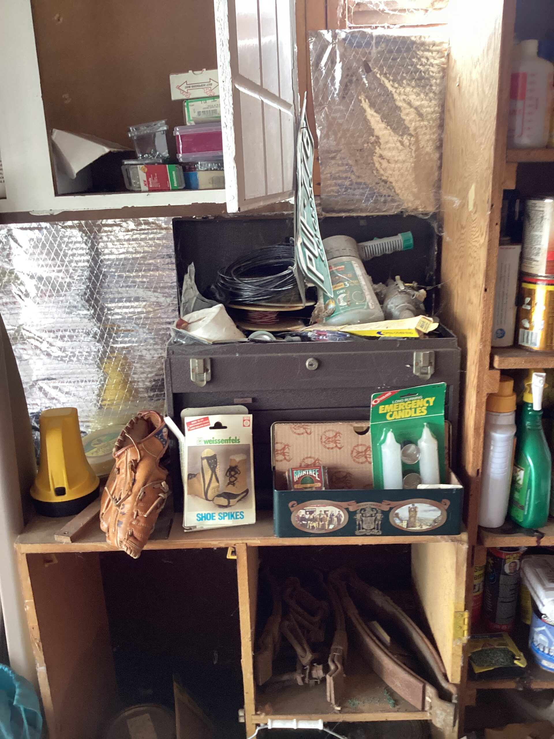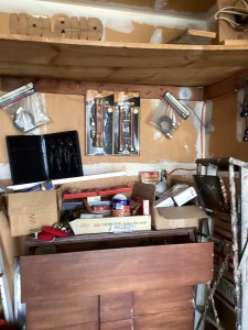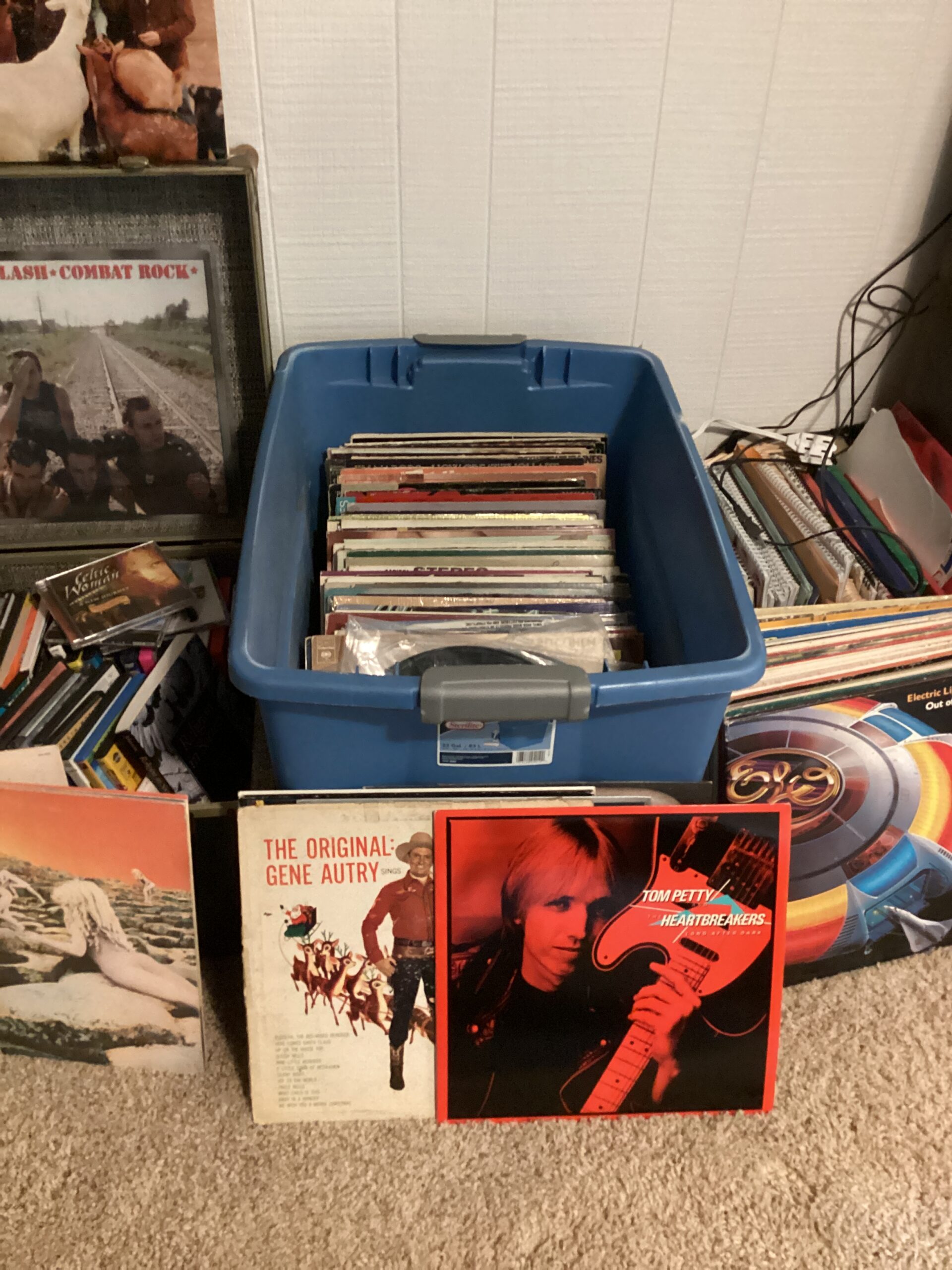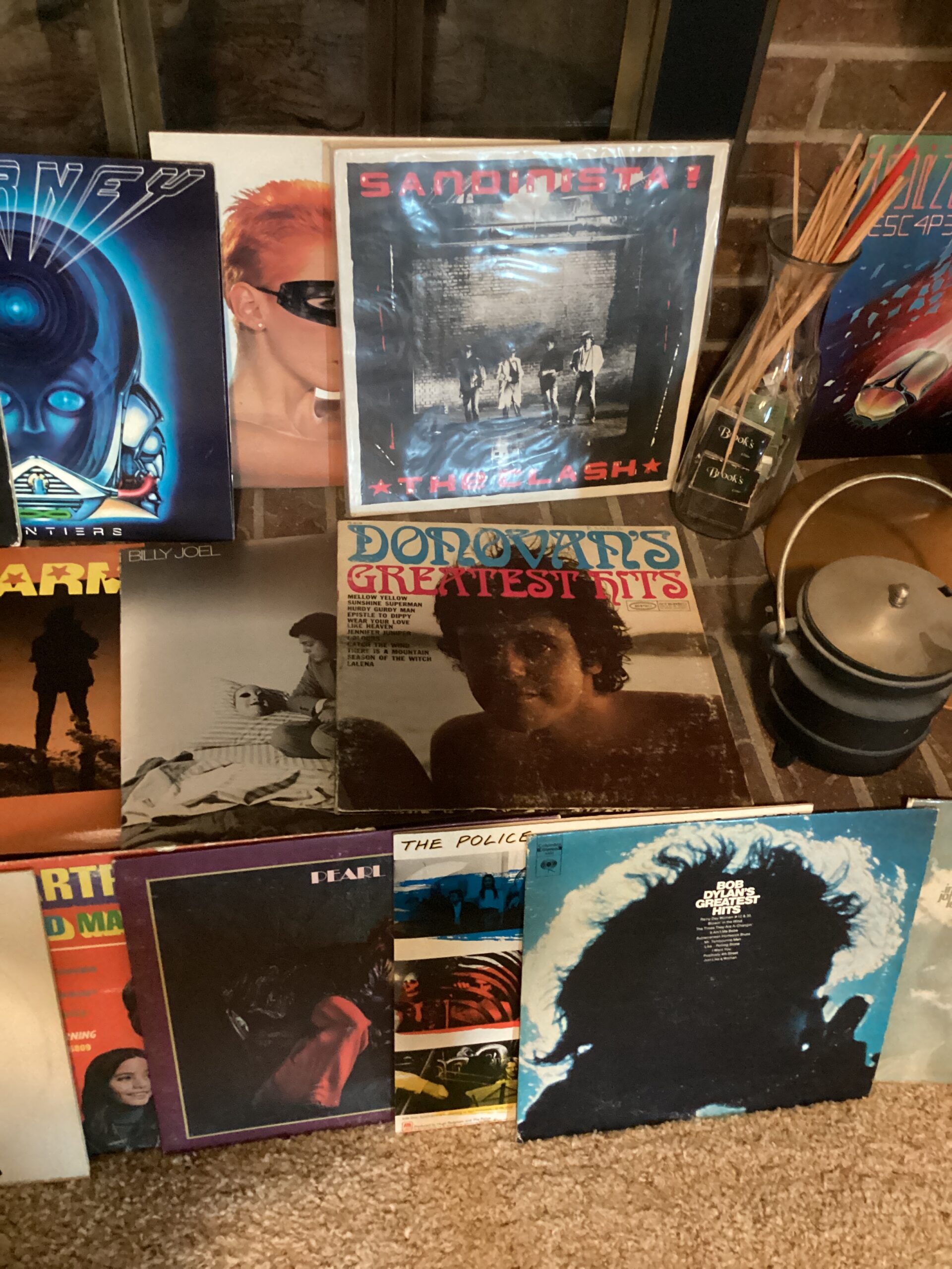 MCM hutch, records, vintage clothing and posters and tools galore!
