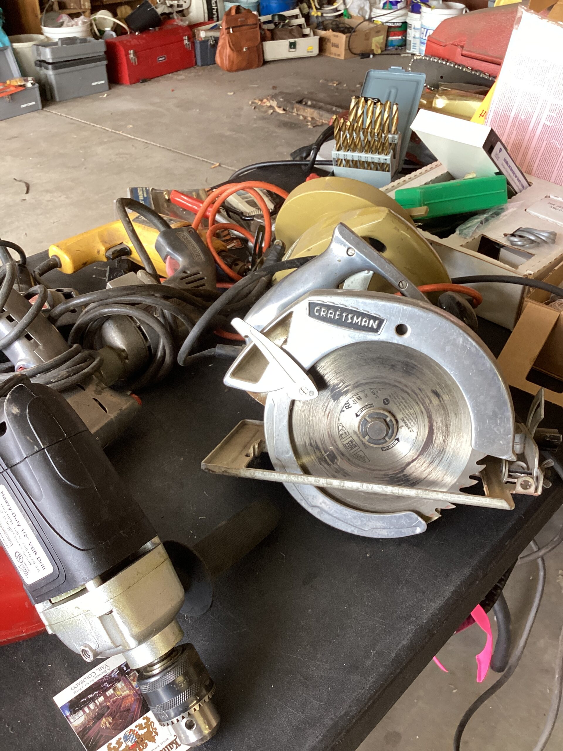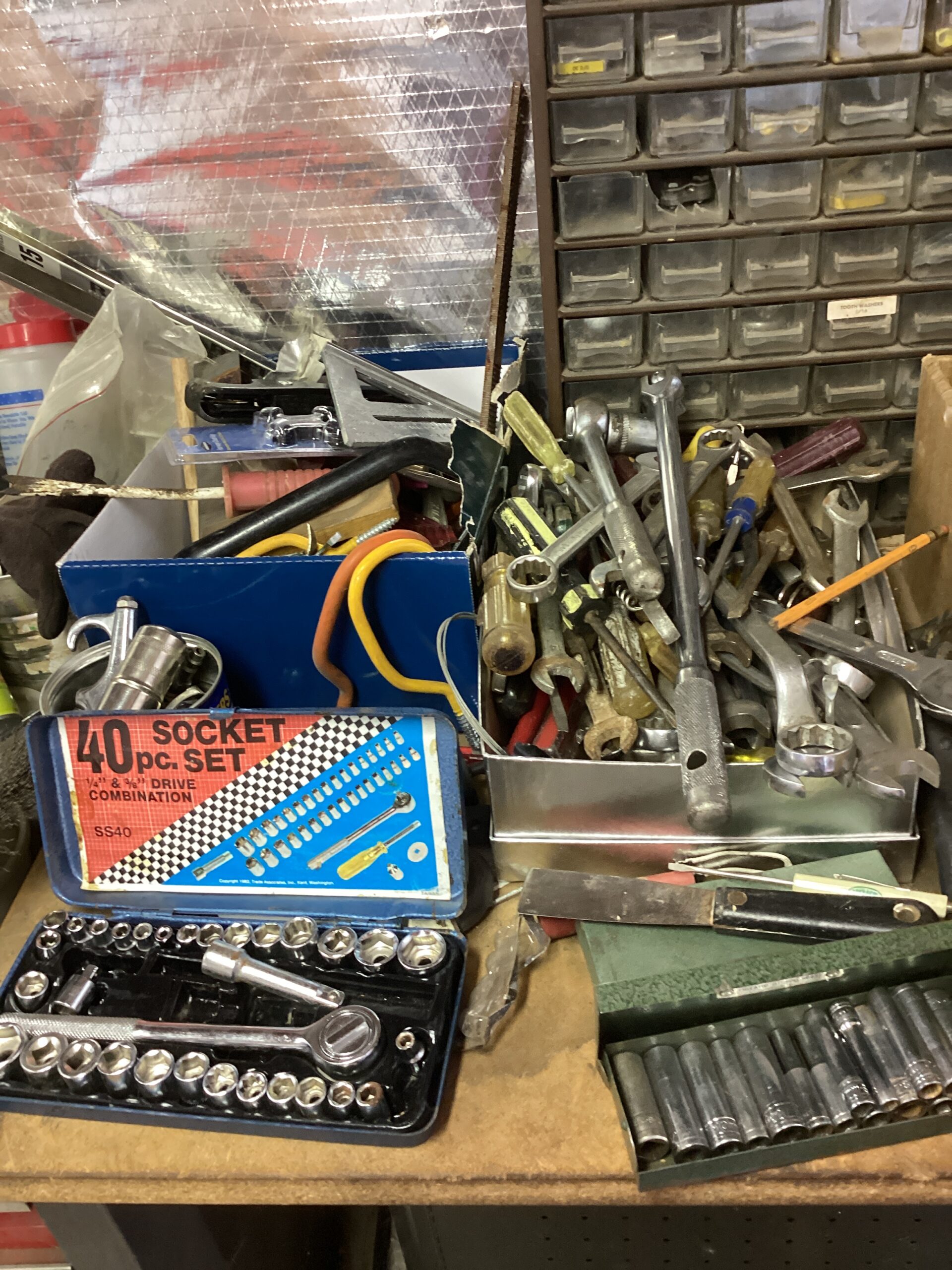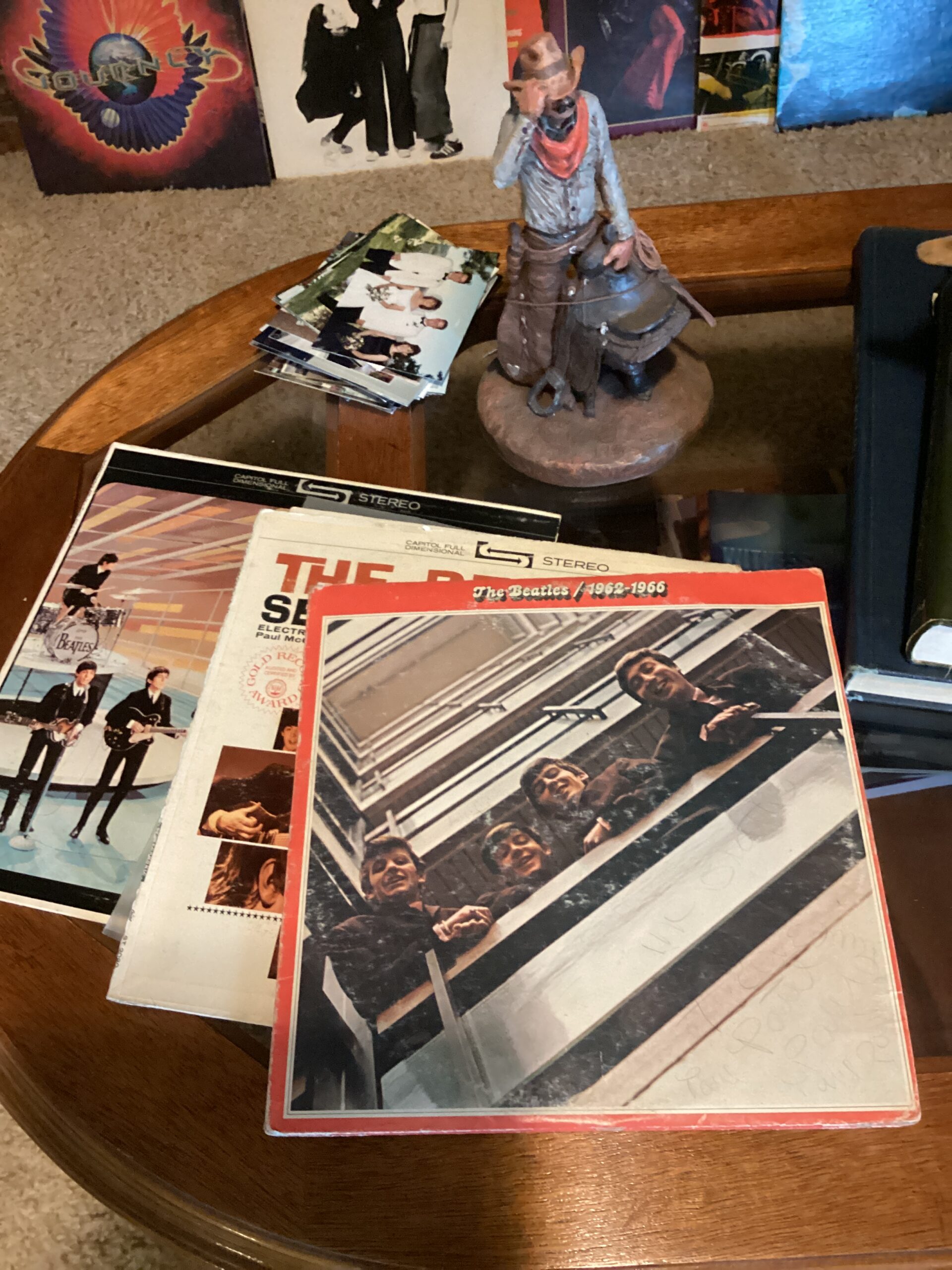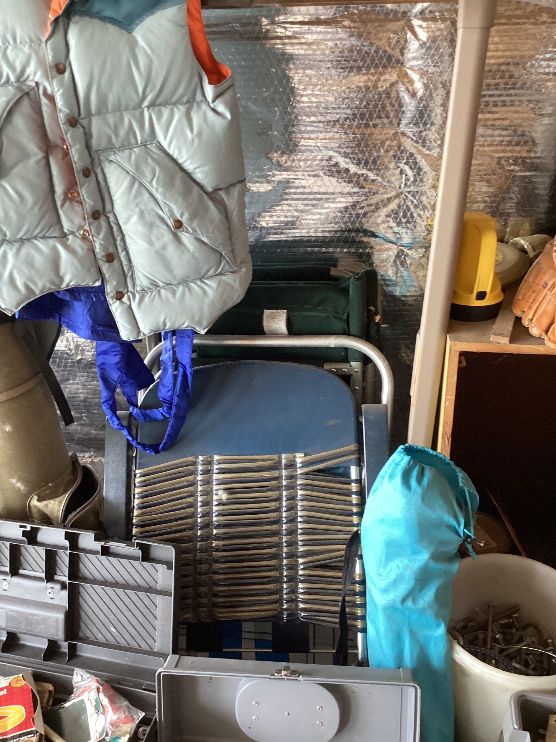 MCM hutch, records, vintage clothing and posters and tools galore!