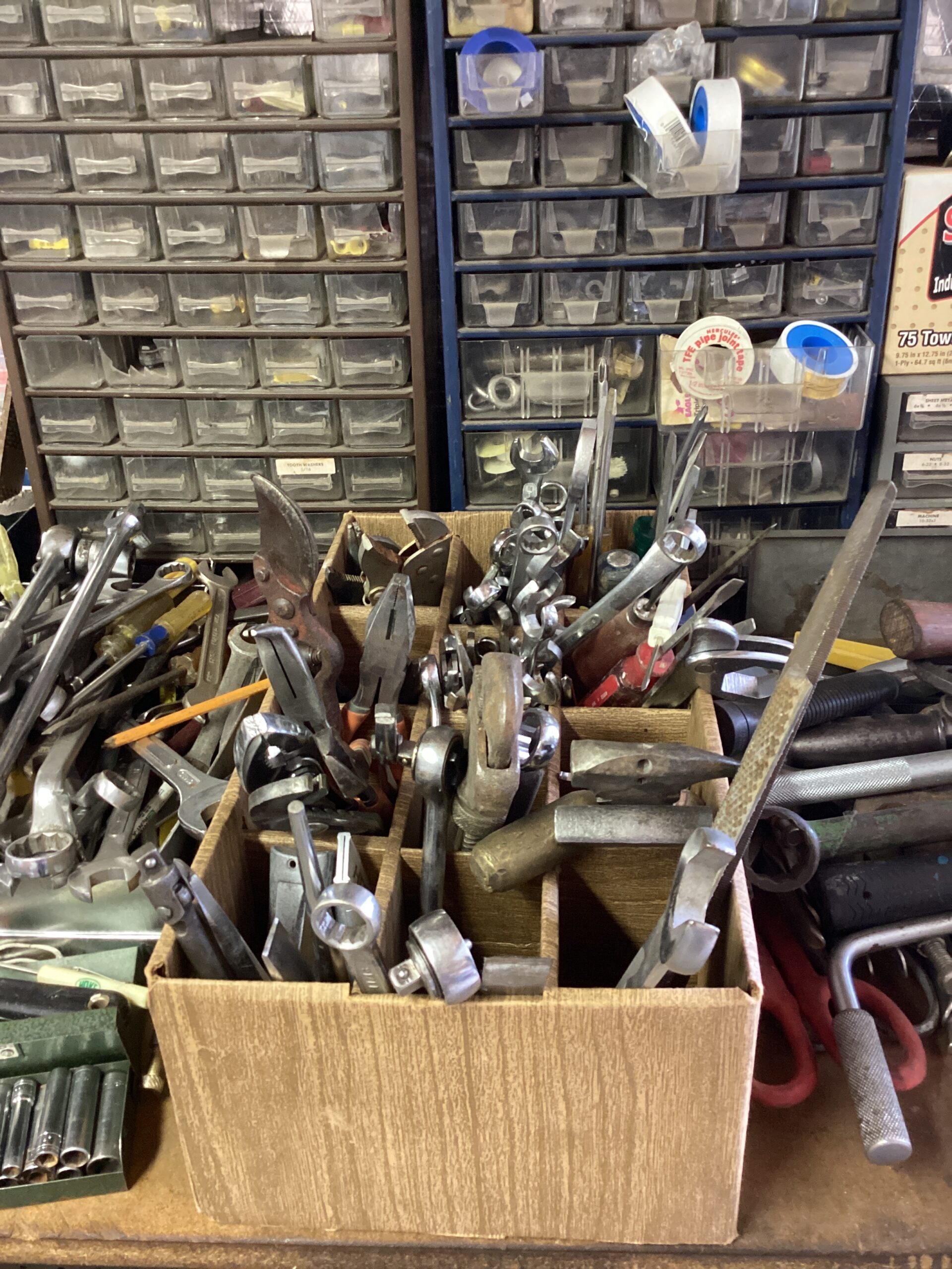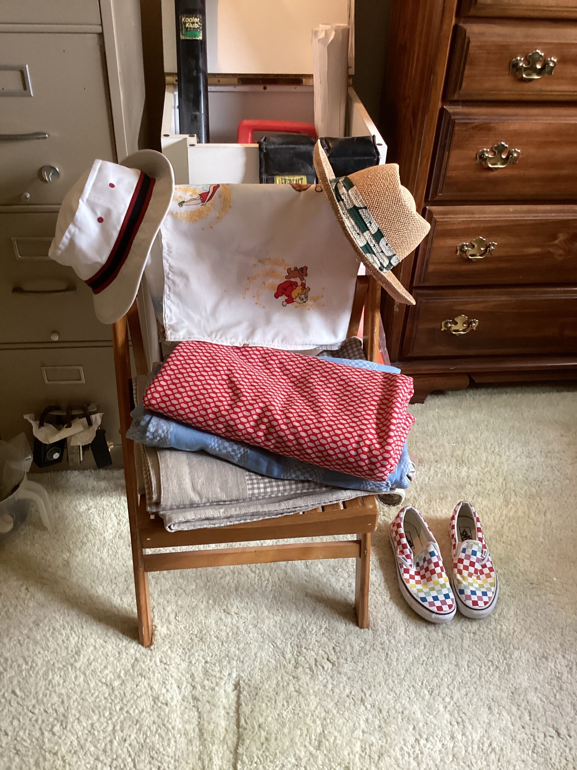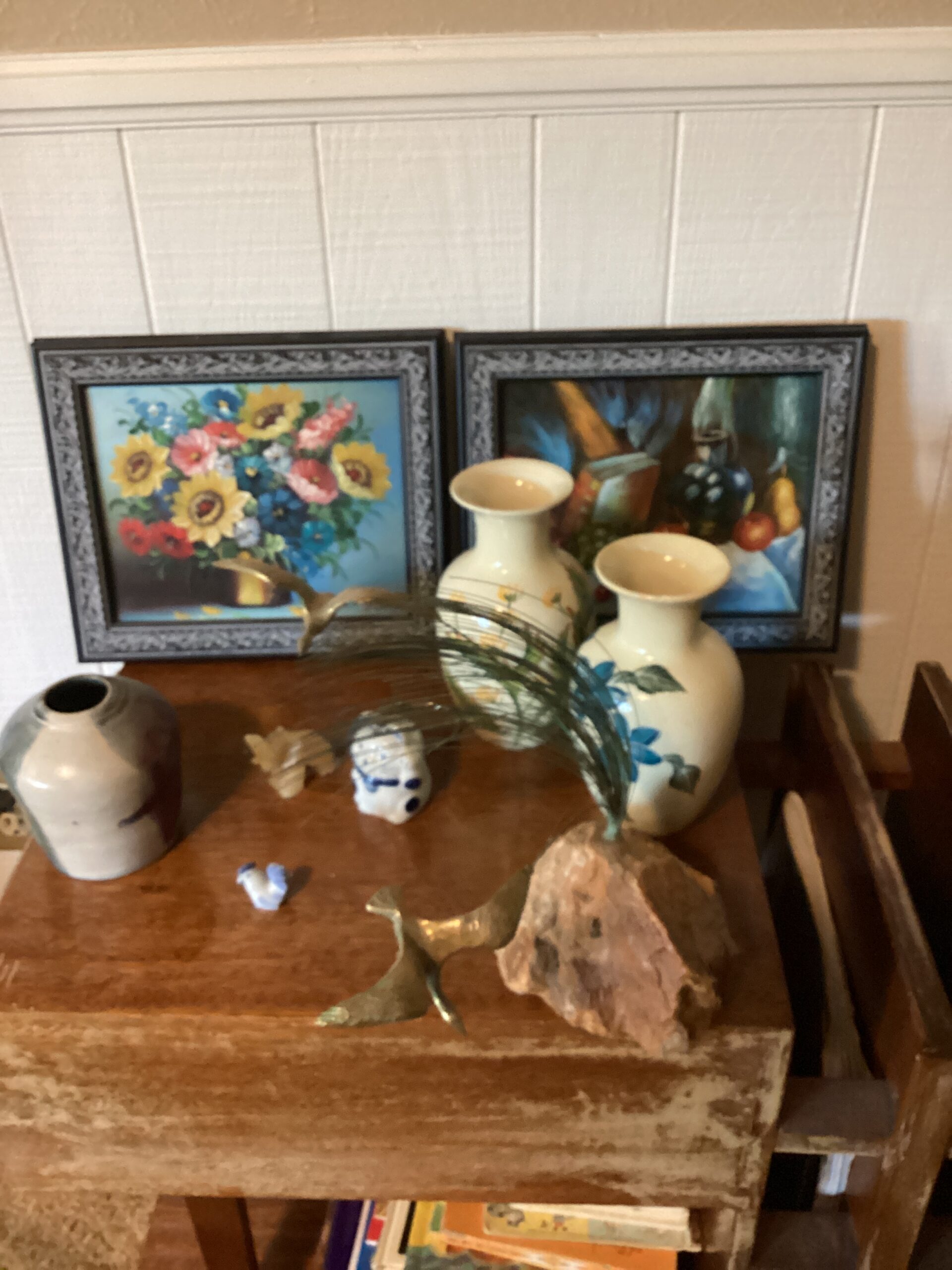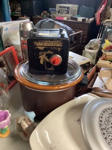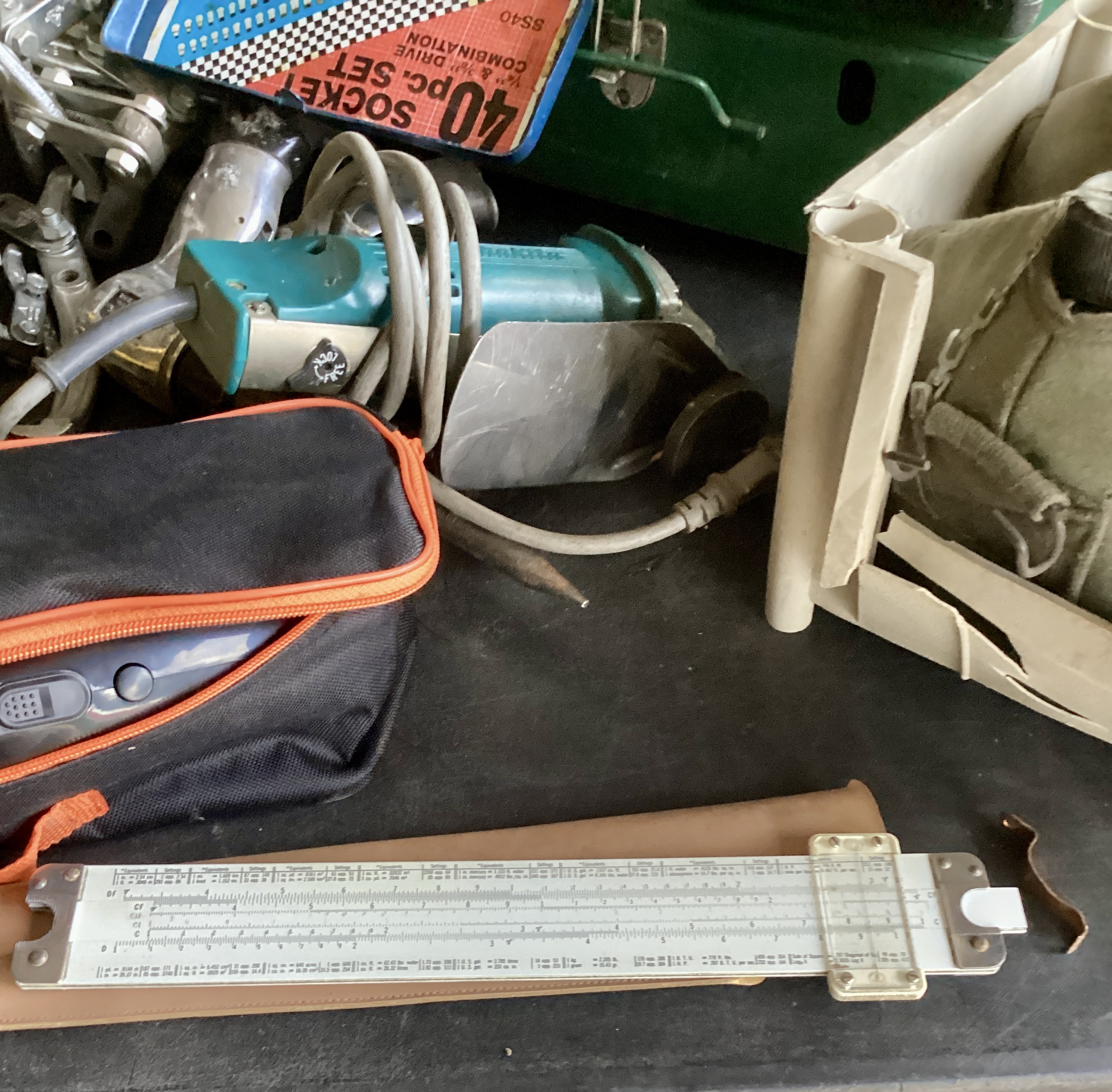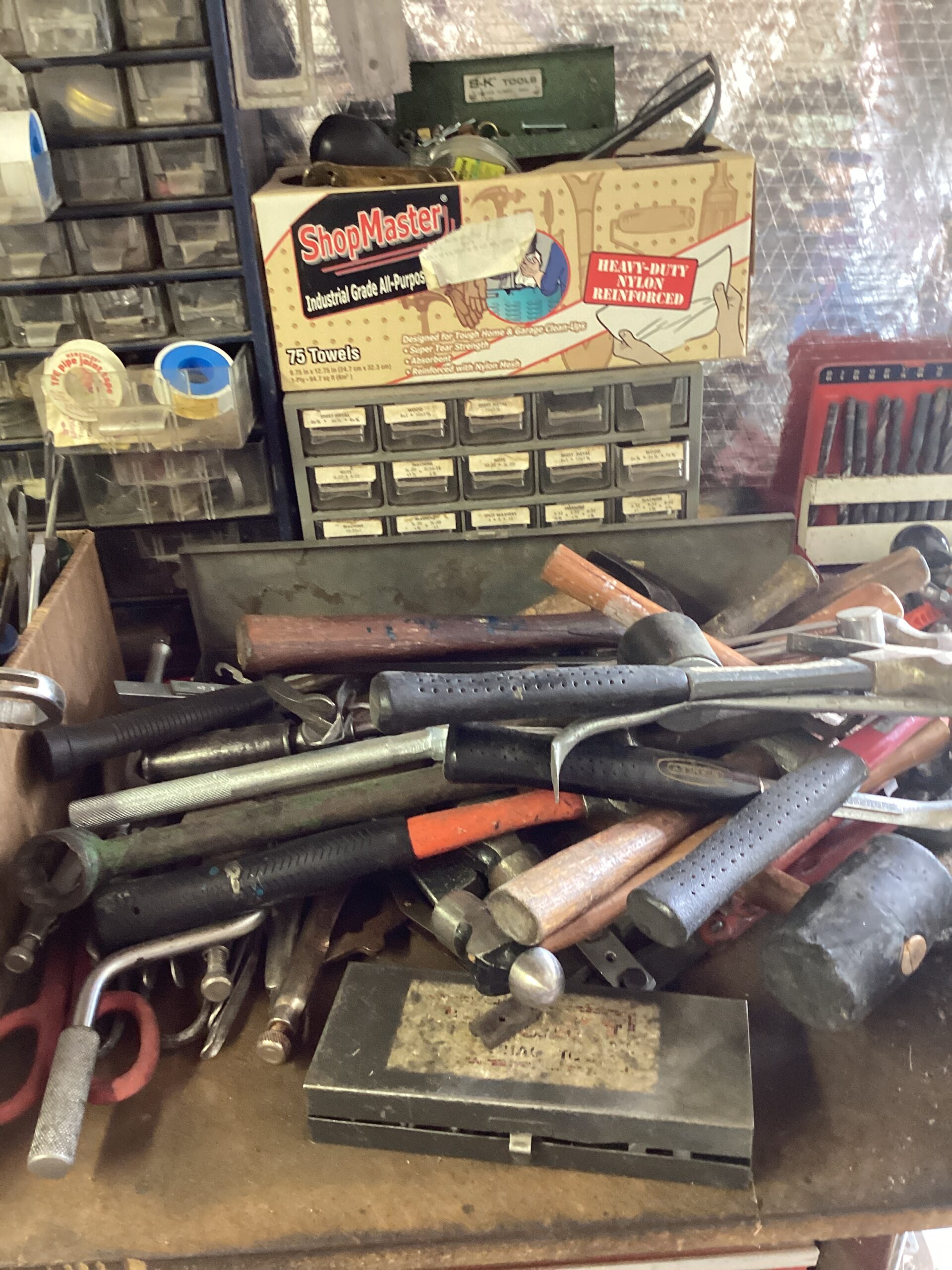 MCM hutch, records, vintage clothing and posters and tools galore!
