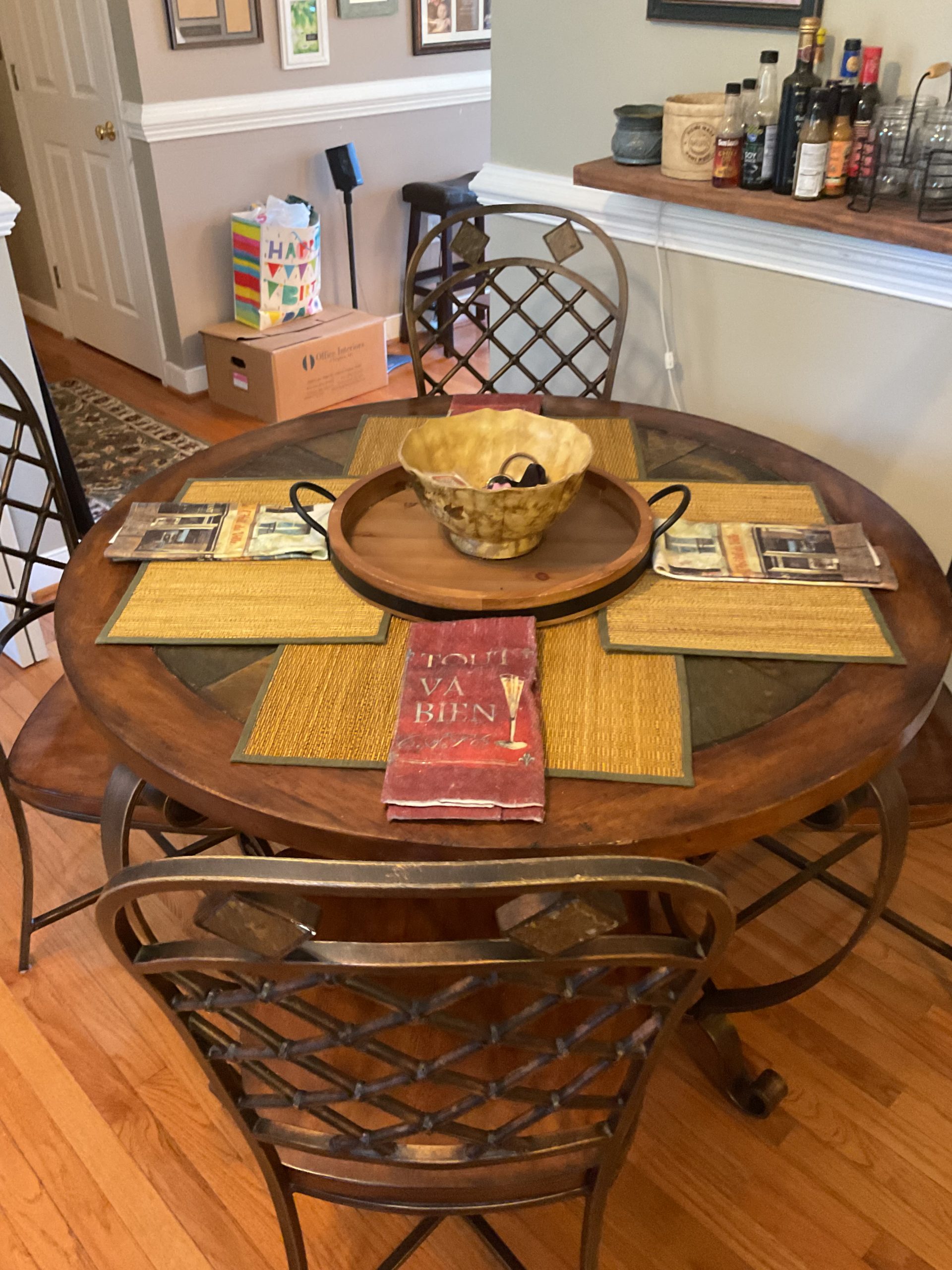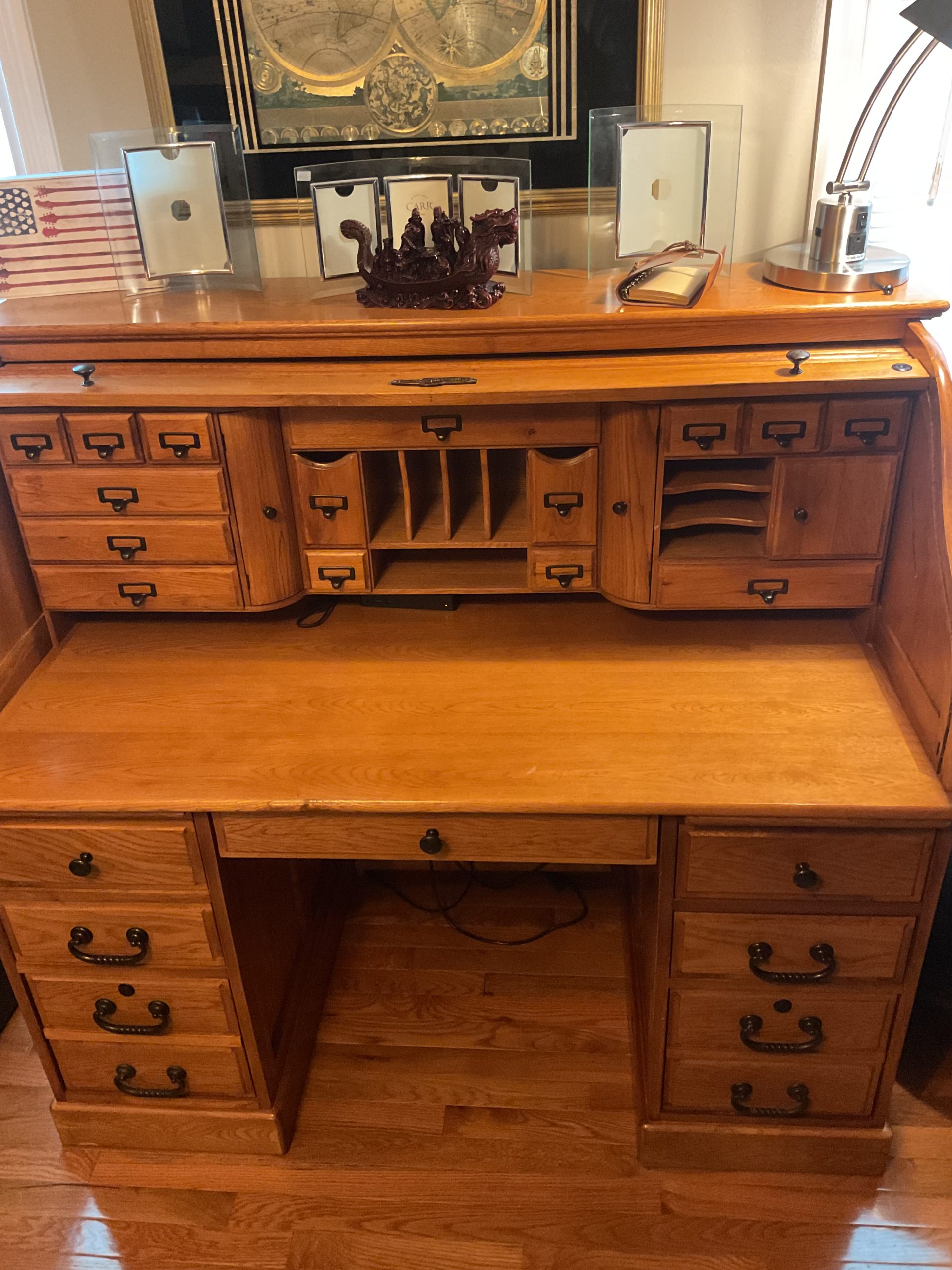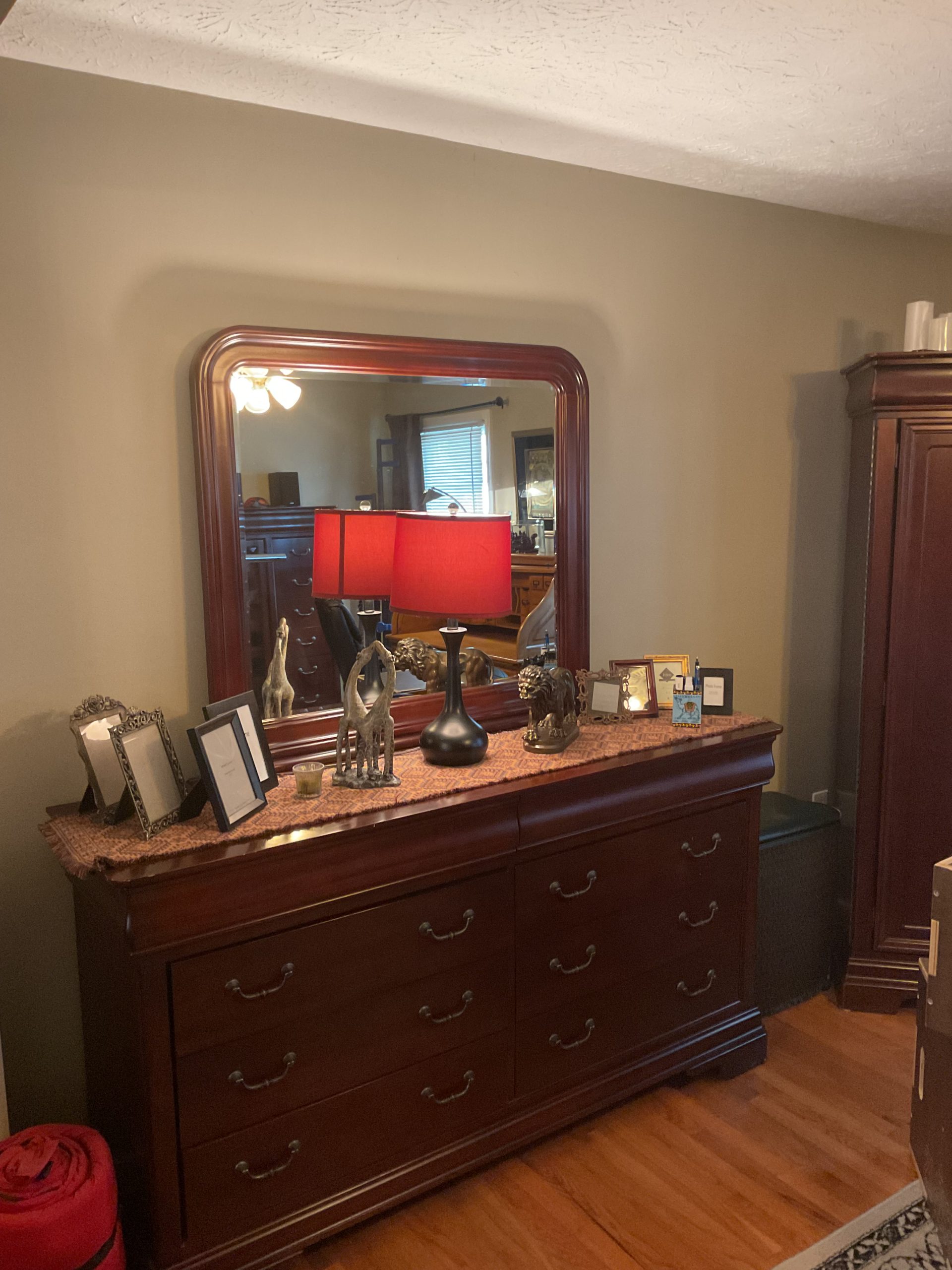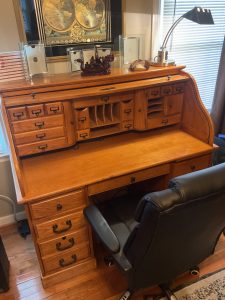This is a great house with great stuff! Beige leather sofa and loveseat, Stone coffee table, framed artwork, electronics, home decor, stained glass lamp, various kitchen wears and small appliances, heavy duty, dining table and chairs, outdoor furniture, Electrolux front load washer and dryer, king size mahogany finish sleigh bed, dresser with mirror, bachelor’s chest, wardrobe cabinet, men’s clothing size large, men’s shoes size 11, men’s sweaters, neck ties, guitar amps, Oak roll top desk, white upholstered sleeper sofa, young ladies, clothing and fashion accessories, holiday decor items, and a much much more!