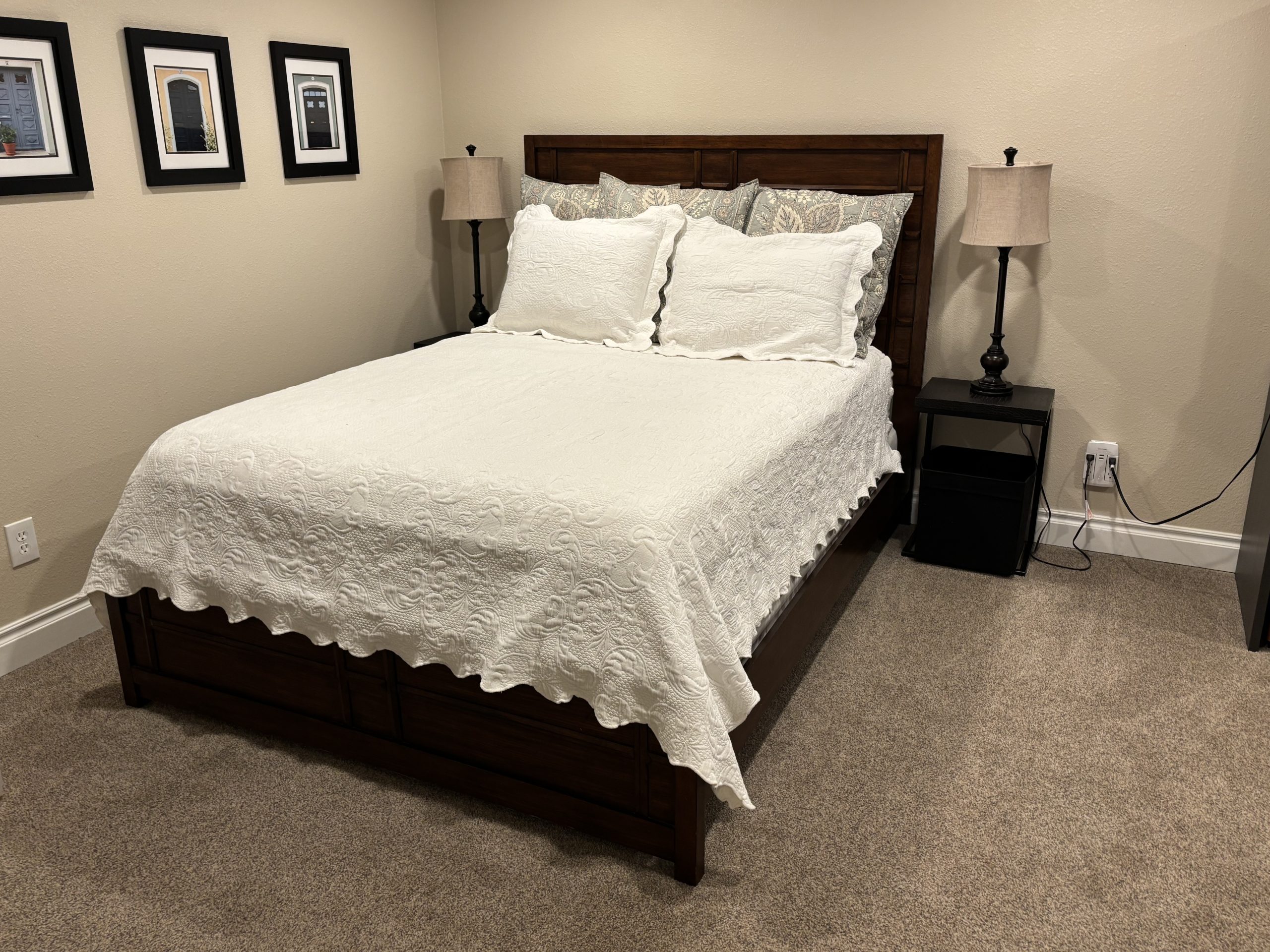 Full Sized Bed with Rustic Wood Headboard