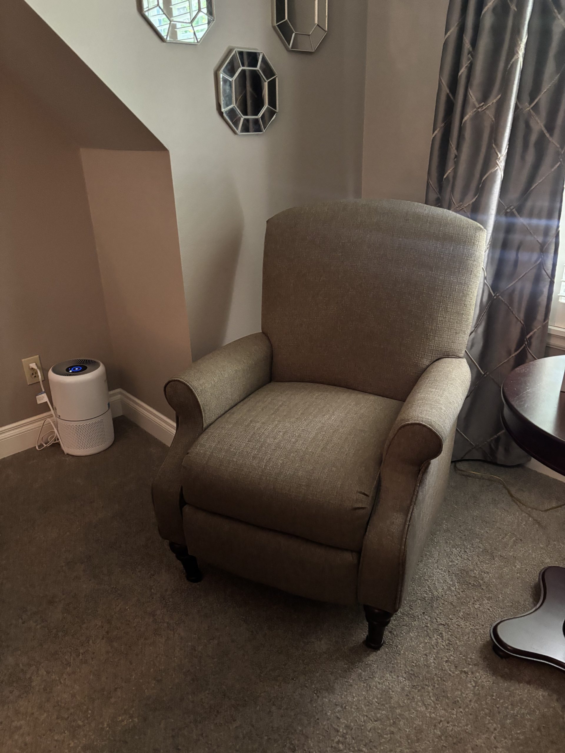 2 Brown Cloth Recliner in a Traditional Style