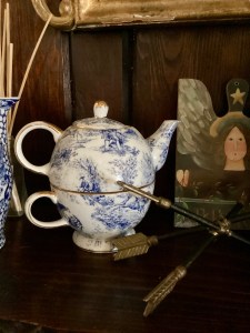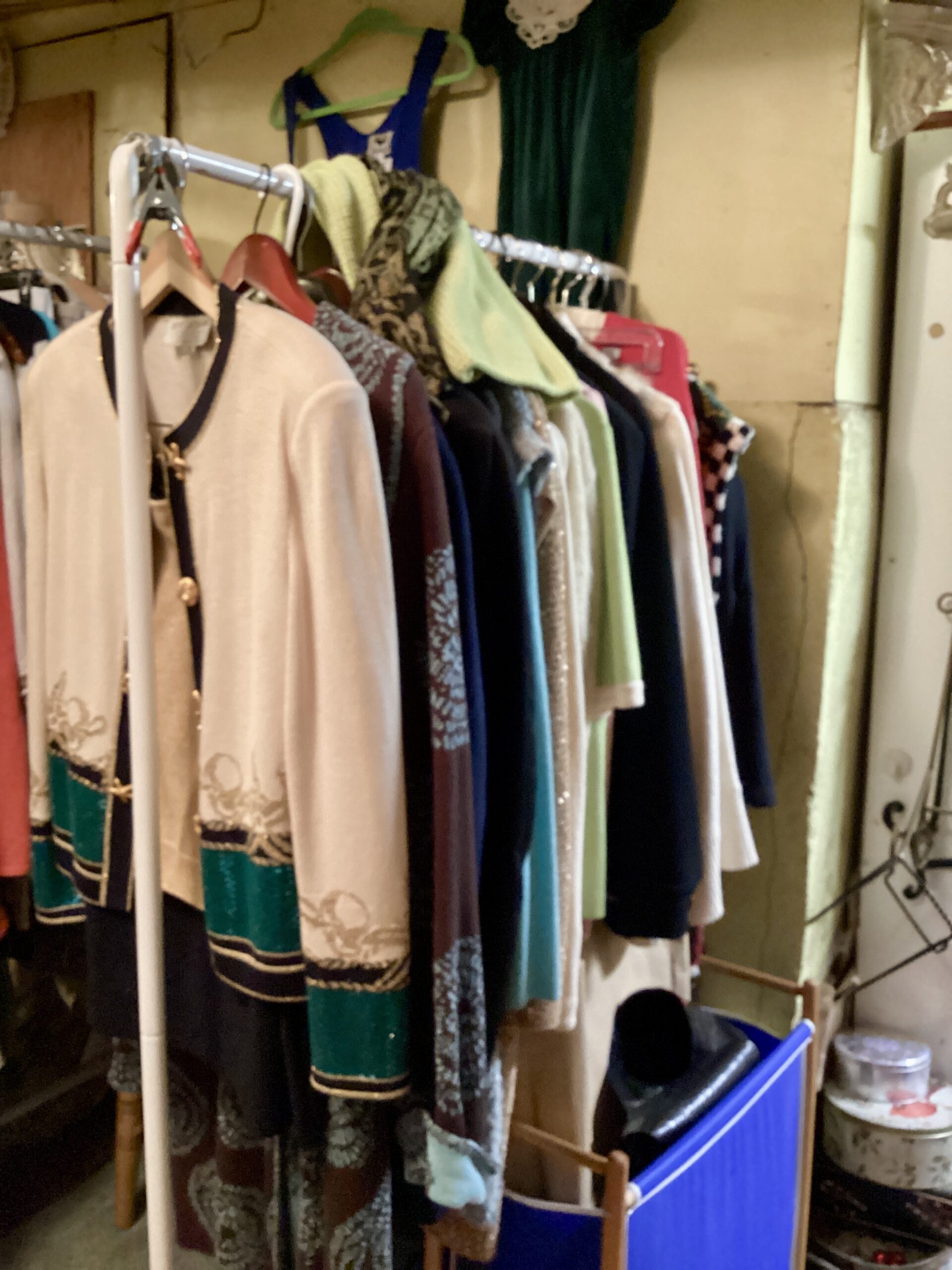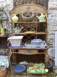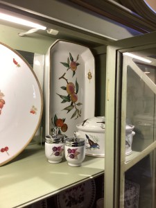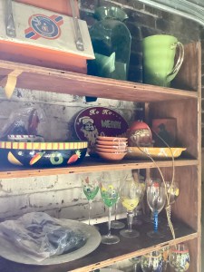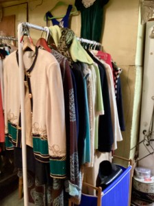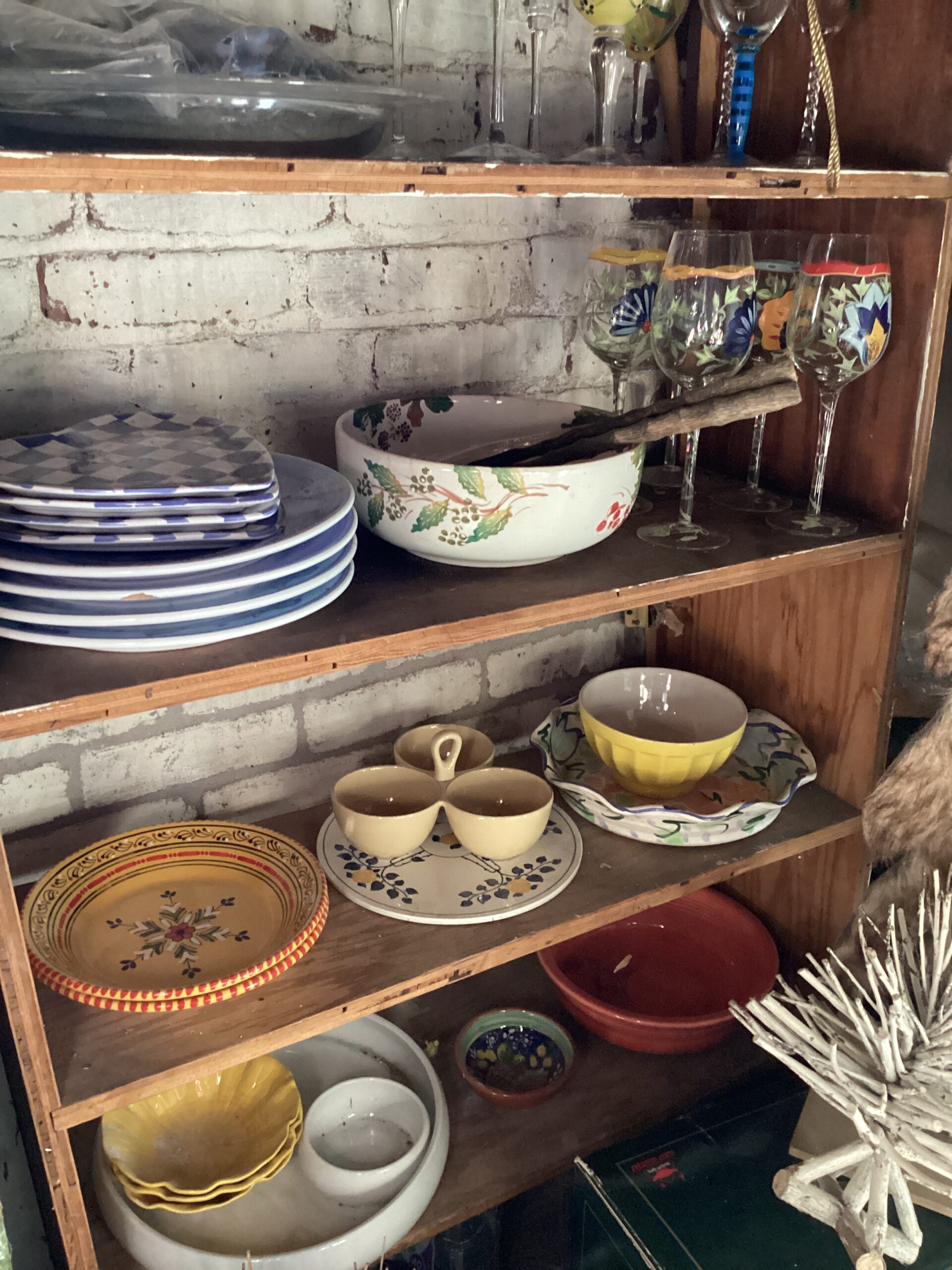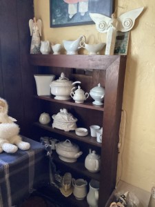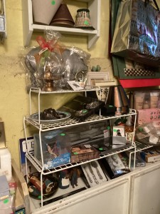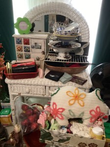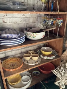 Handmade collectible decor, antiques, dishes, and designer clothing