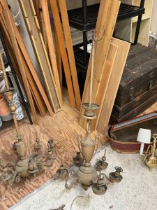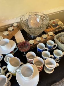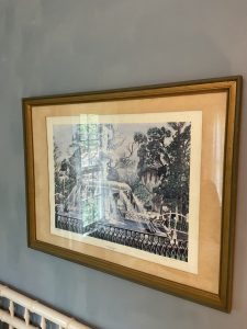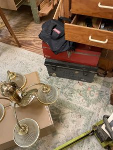 This house is tucked away in a peaceful neighborhood and has all sorts of hidden treasures to take home with you! Excellent collection of original artwork and prints, Dr. Syntax prints c.1812, Ann Taylor Clothing, costume jewelry, ladies Handbags, housewares, furniture, vintage wood golf clubs, books, vinyl albums, area rugs and runners, 19th century cain chairs, MCM curio cabinet, linens, drapery and drapery hardware, early electric light fixtures, tools, vintage craftsmen table saw, catering equipment, outdoor tools and yard items, freezer chest, and much much more!