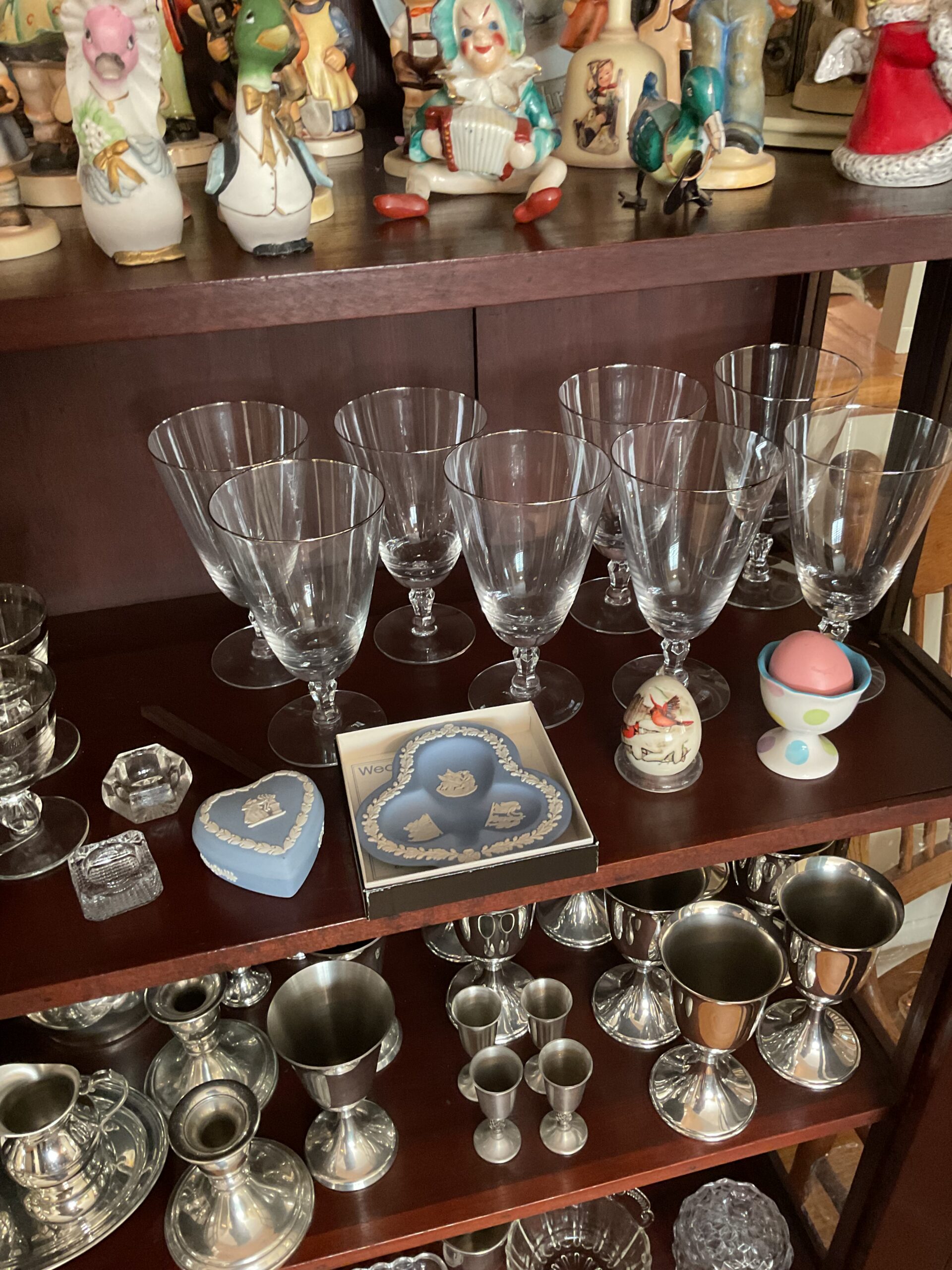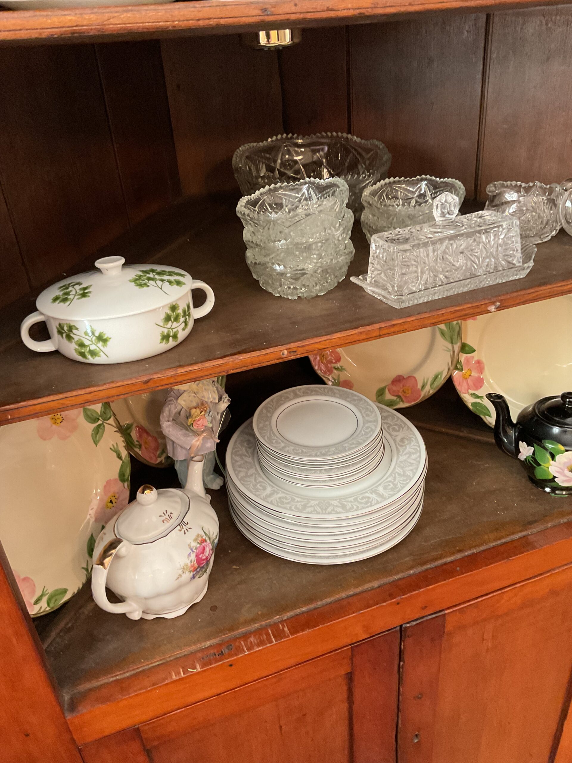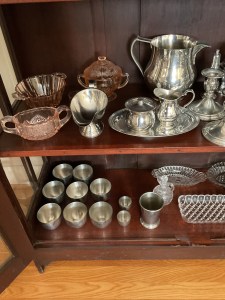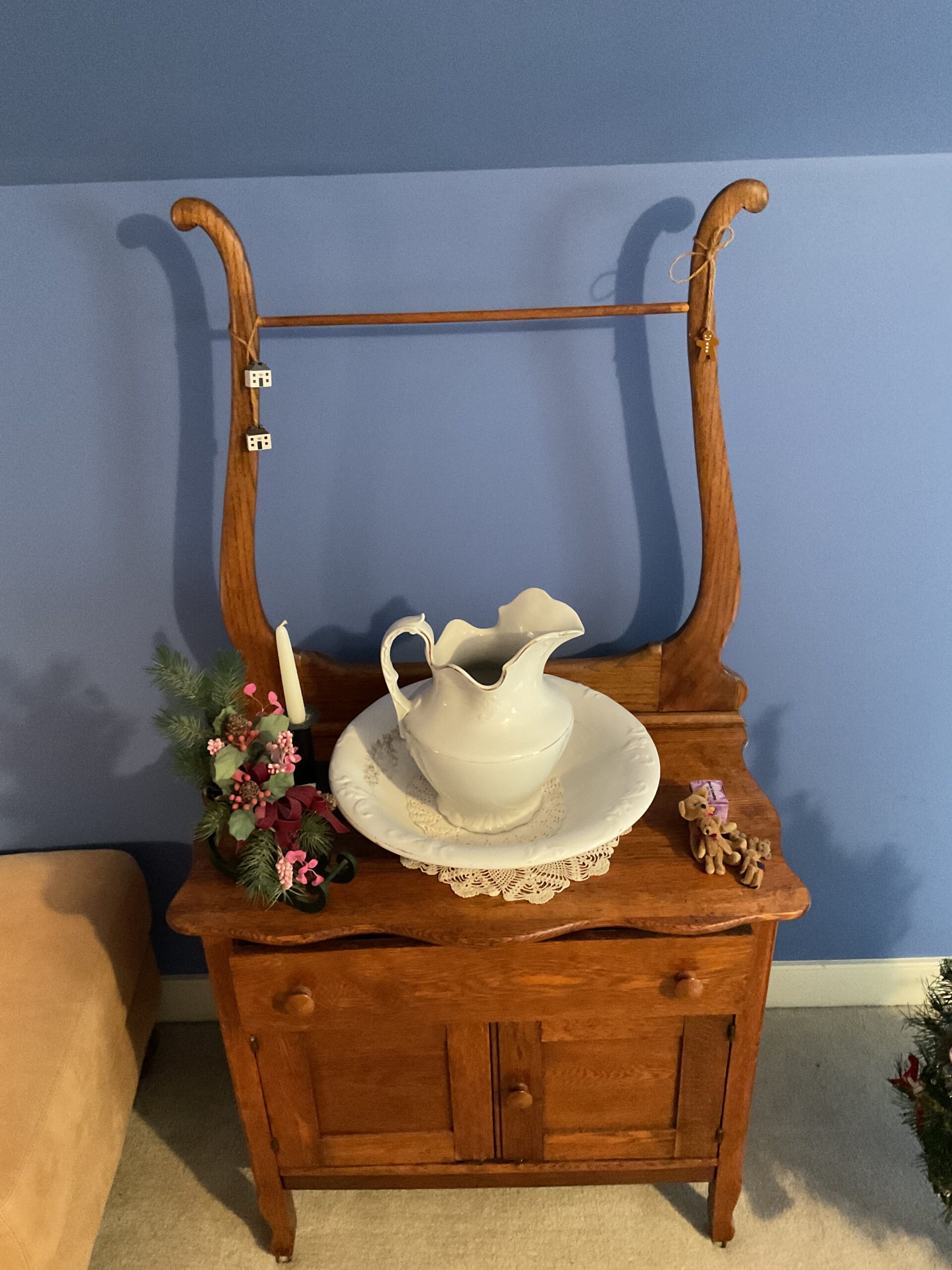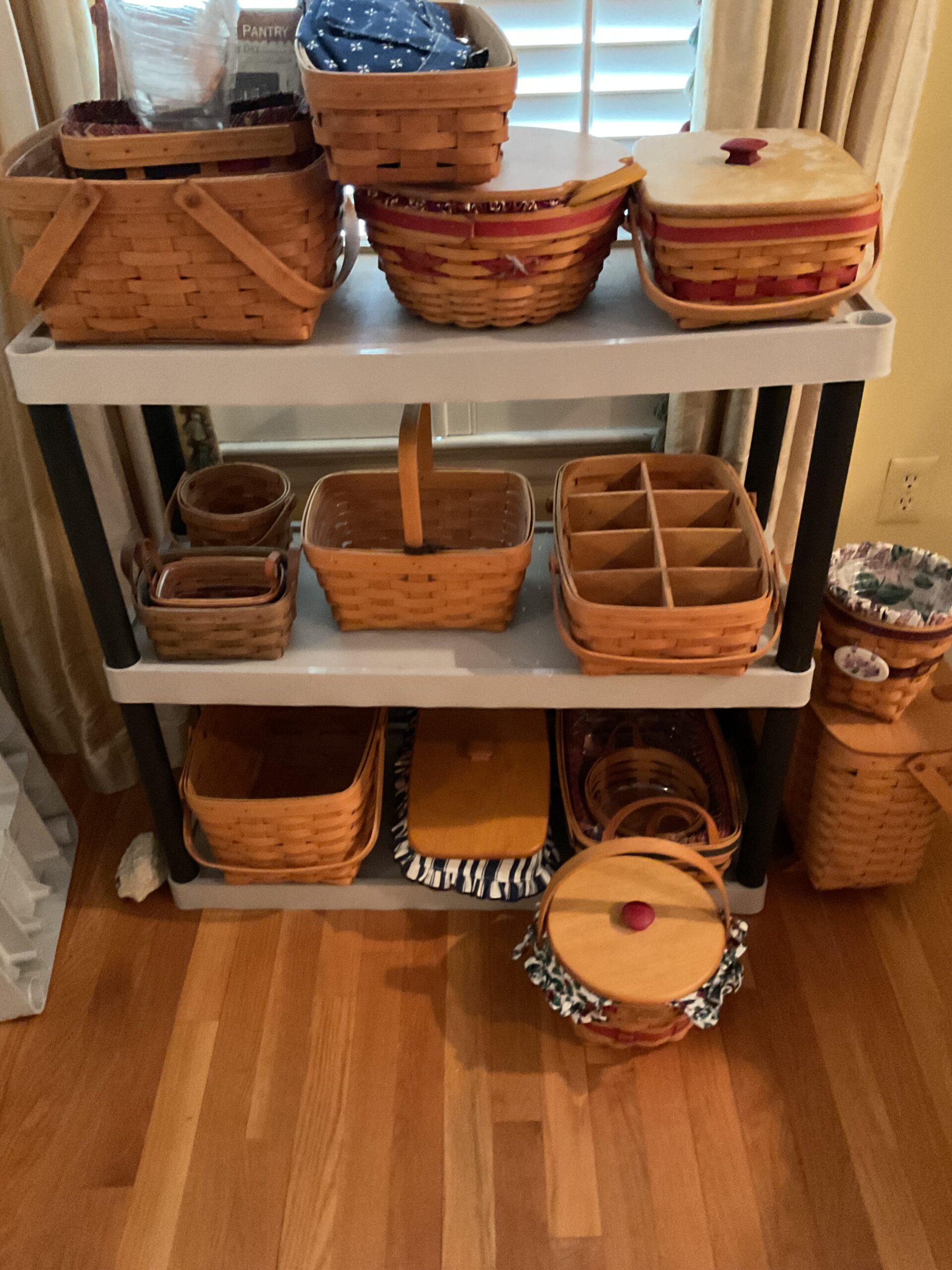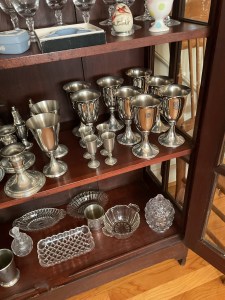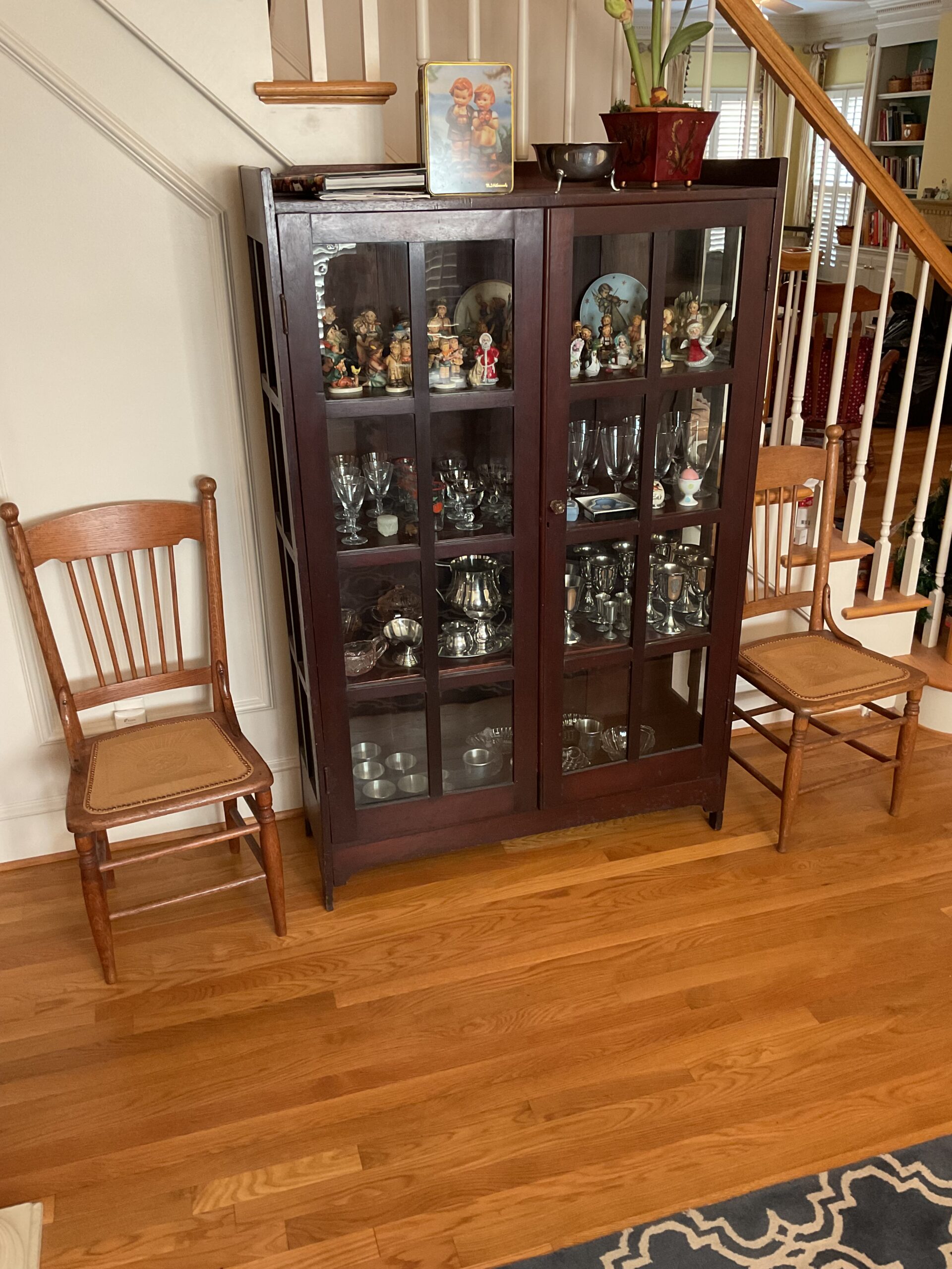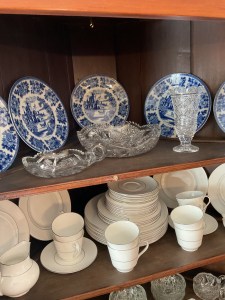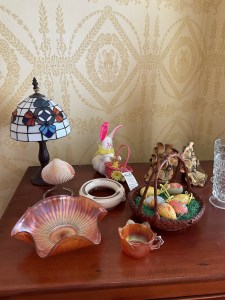 Anitque Pine corner cabinet, southern hunt board, Arts and Crafts style glass front China closet, golden oak press back chairs, golden Oak dining table, Fostoria American glass, Hummel figurines, Royal Dalton China, Crystal, Marble top Victorian tables, Cabinet style photograph,78 rpm records, Oil lamps, Barrister style bookcase, mahogany end tables, Virginia local vintage cookbook collection, Longaberger basket collection, vintage kitchen ware, vintage Corningware including “Spice of Life” pattern and “ Cornflower Blue “, Hinkel Harris nightstands, antique brass bed, Golden Oak washstand, antique oak rocking chairs, Sheraton style gooseneck reproduction sofa, Foxhunt themed decor and prints, oil paintings, framed Victorian prints, Vintage Singer sewing machine, antique school desk, the babies and other small stuffed animals, mahogany chests of drawers, marble top. Victorian washstand, holiday decor items, Craftsman Style entertainment center, vintage crocheted coverlets, ladies clothing size 16 petite to extra large, handbags, scarves and accessories, Antique tools, vintage workbench, garage items, c.1900 Golden Oak recliner, Queen Ann style mahogany server, occasional tables, costume jewelry, antique perfume bottles, straight razor collection, pocket watches, And much much more!