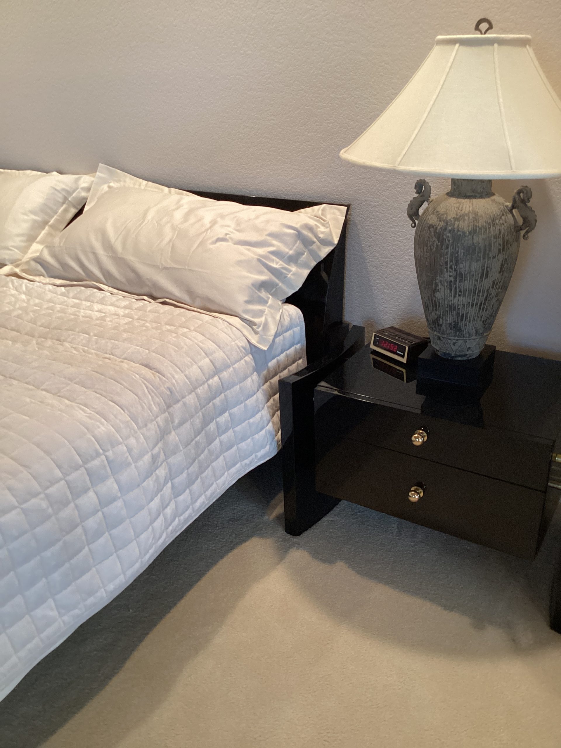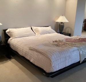 modern king size platform bed and side tables by Elkins