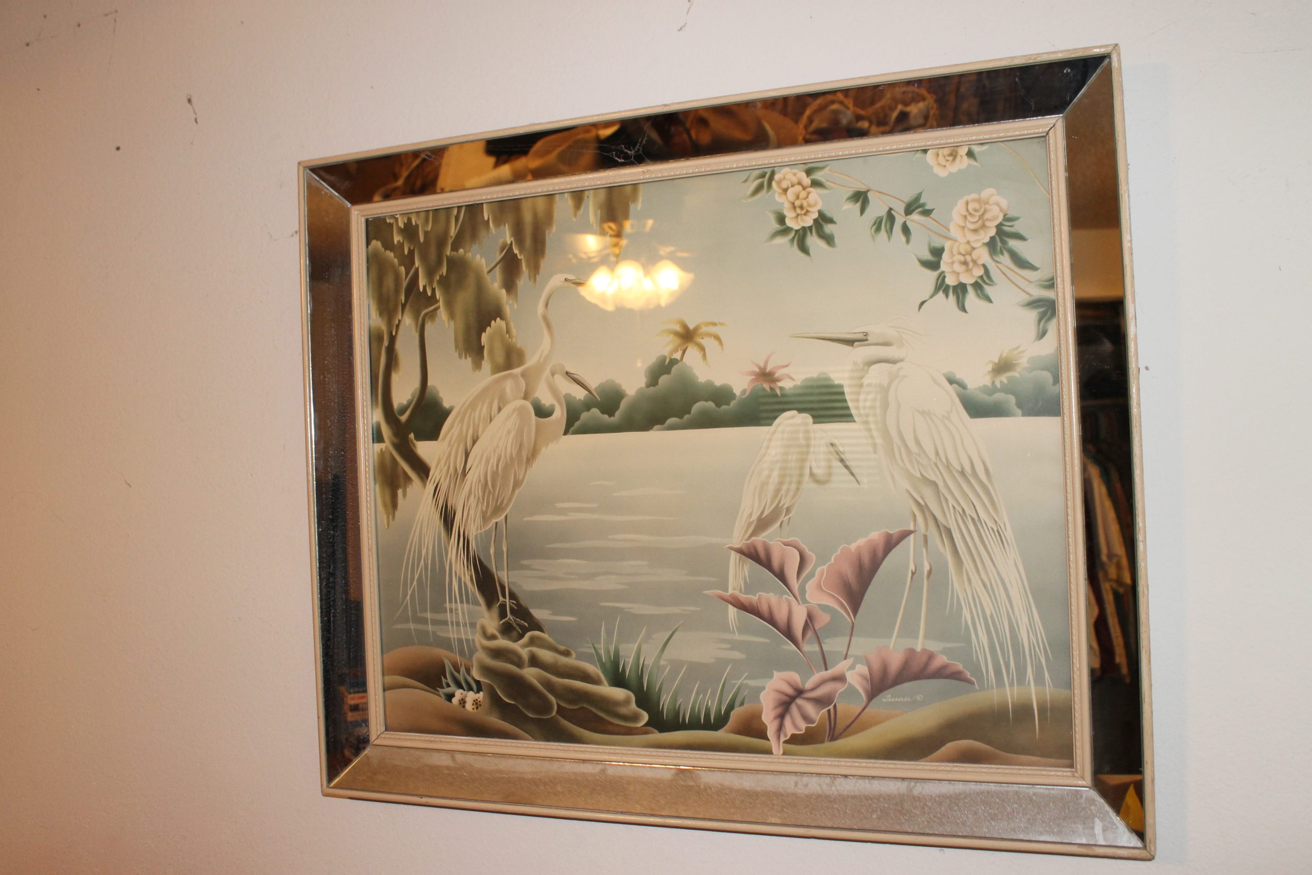 1950s Flamingo Prints in mirrored frames