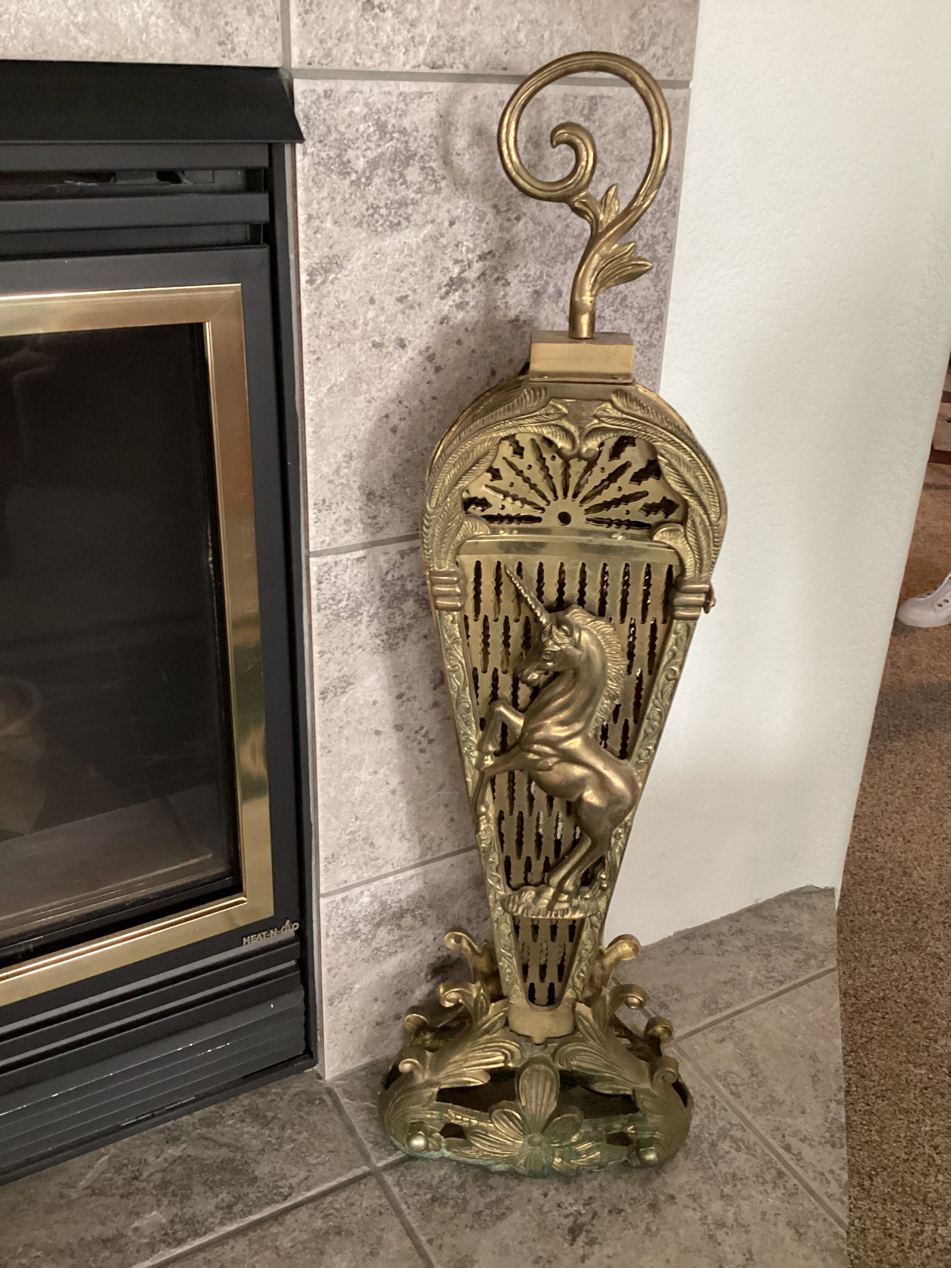 vintage brass peacock fireplace fan