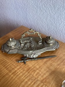 brass antique inkwells