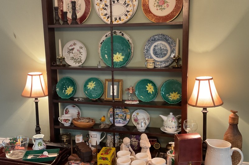 1850s three piece candelabra set, rugs, furniture, China, Lennox bird plate collection, art, kitchen items, lots of holiday decor, queen size Charleston Rice Bed, porcelain figurine lamps, vintage G.I. Joe toys, garage and yard items, and much, much, more!